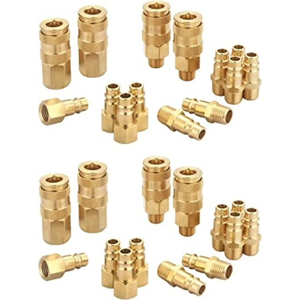 T TANYA HARDWARE Kit de acoplador y enchufe de alto flujo Pro 28 piezas, estilo V, 14 pulgadas, NPT, juego de accesorios de aire de conexión rápida de latón macizo