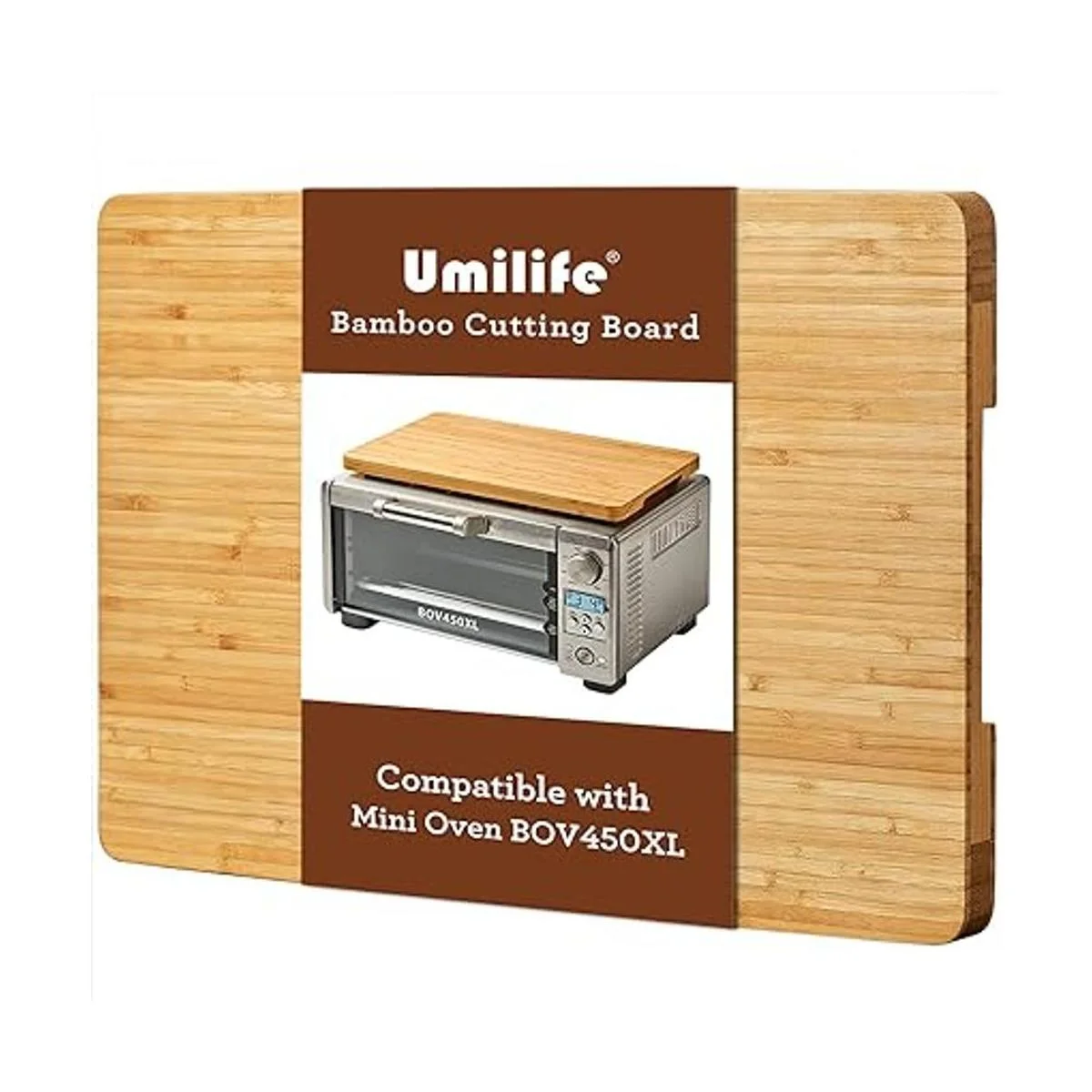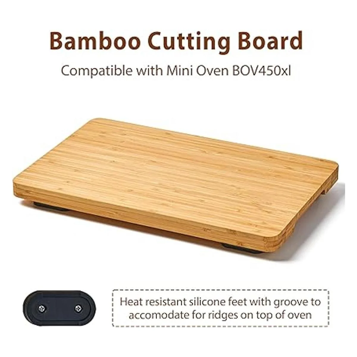 Tabla de cortar de bambú diseñada para ser compatible con Mini Smart Oven BOV450XL horno excluido. Protege los armarios de daños; protege el horno de arañazos; protege a la familia y mascotas de daños por el calor.