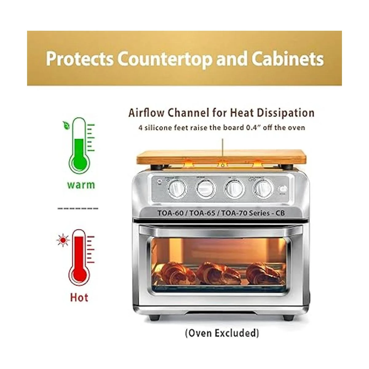 Tabla de cortar compatible con horno freidora de aire TOA60TOA65TOA70, accesorios para horno tostador de convección, con pies de silicona resistentes al calor, crea espacio de almacenamiento, protege el armario