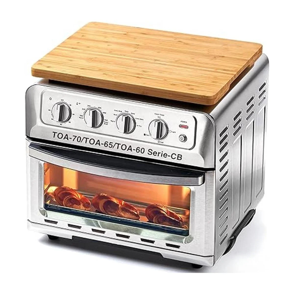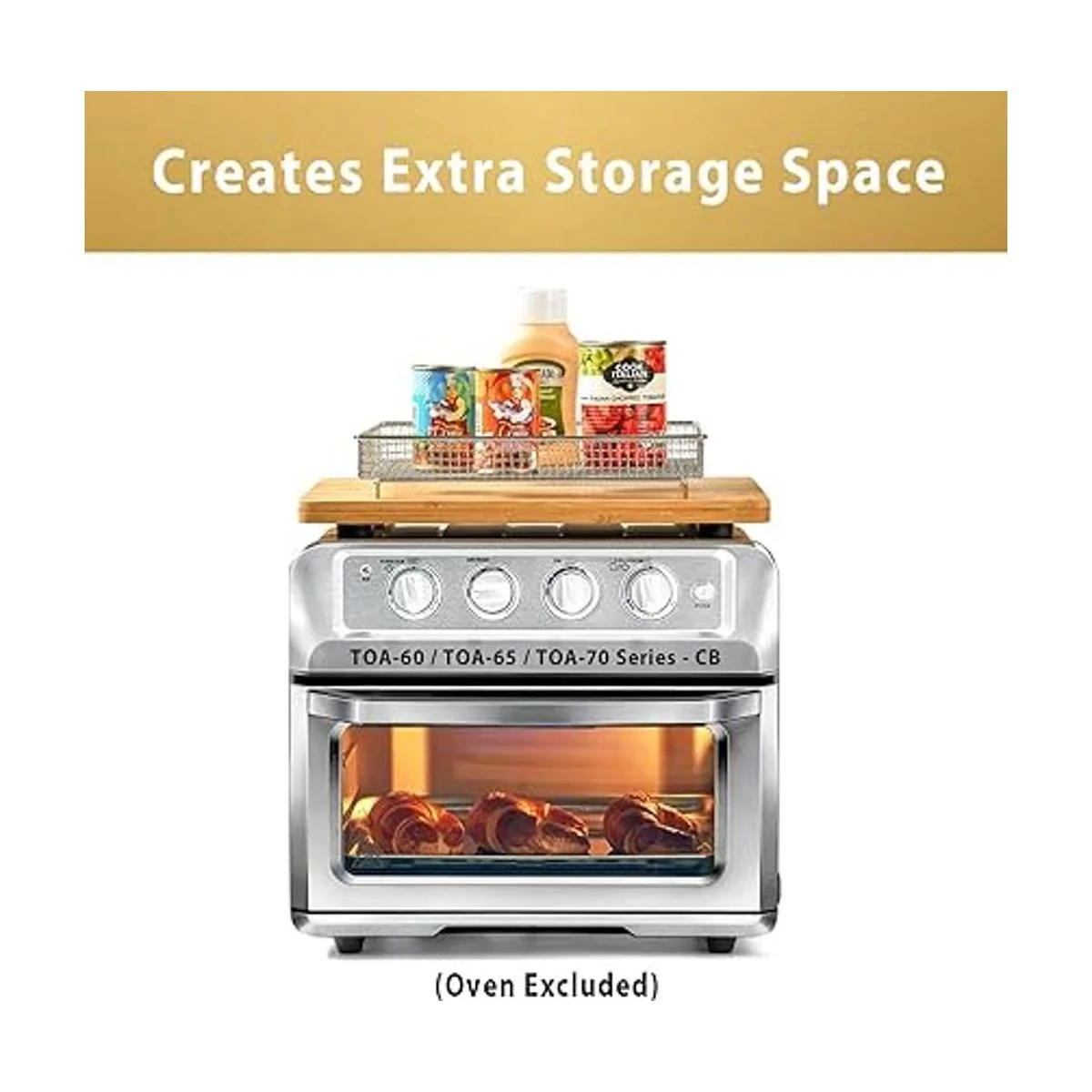 Tabla de cortar de bambú compatible con horno freidora de aire TOA60 / TOA65 / TOA70. Se coloca de forma constante en el horno, protege armarios, encimeras, superficies del horno de daños; protege a la familia y mascotas de daños.