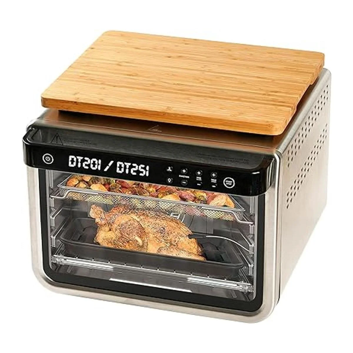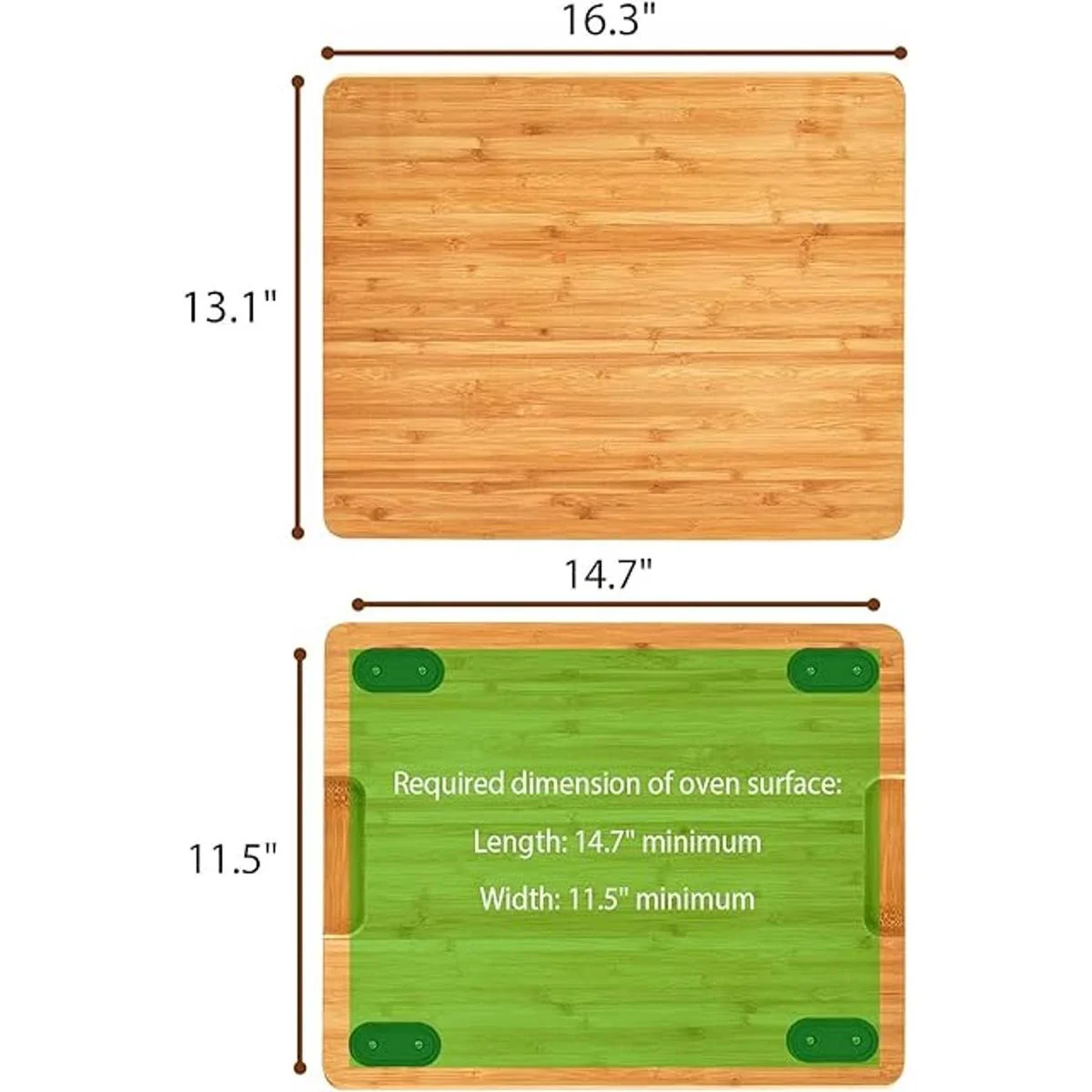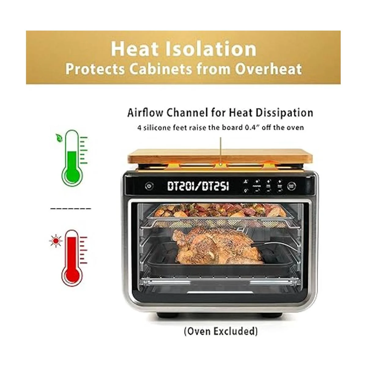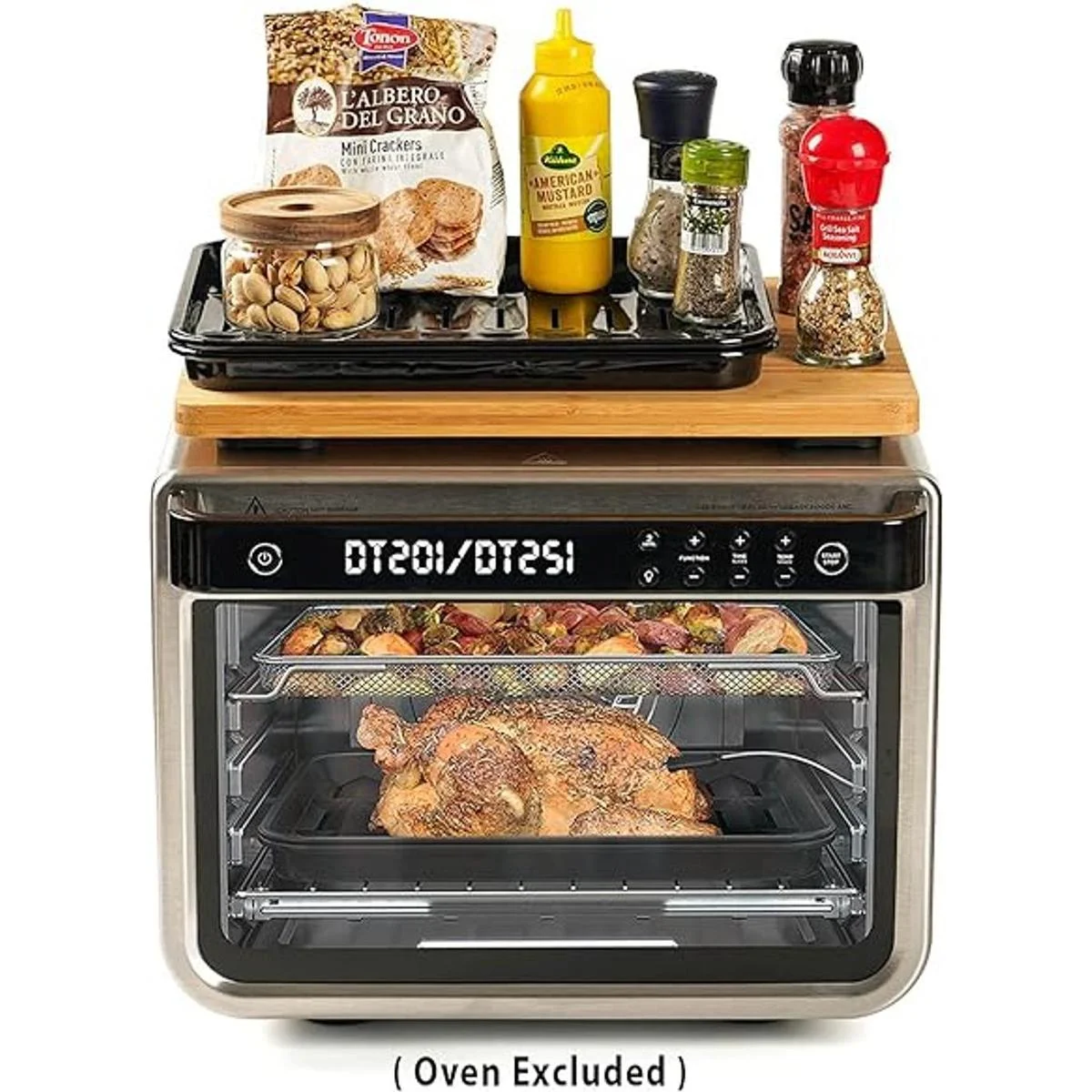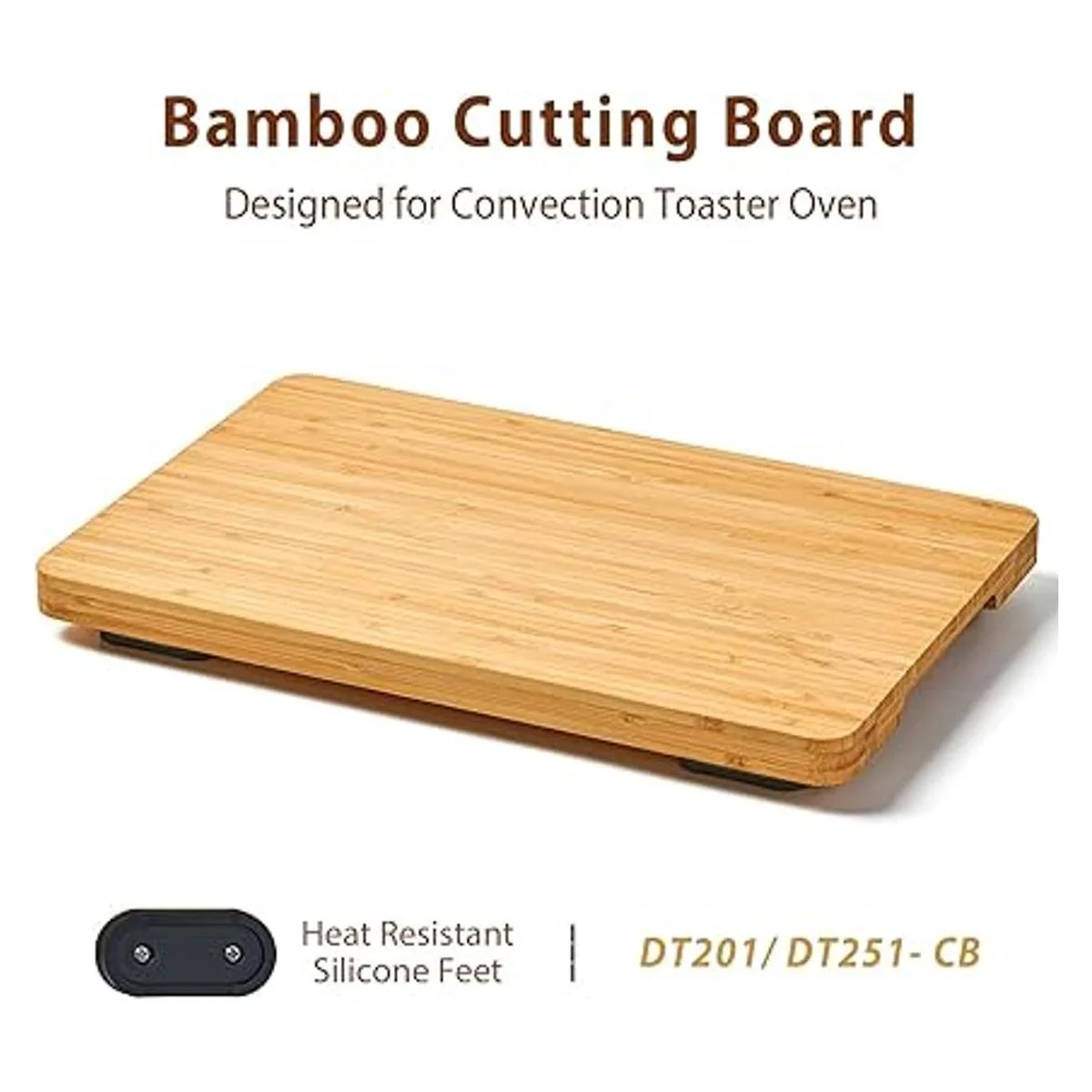 Tabla de cortar de bambú sentada en horno tostador de convección horno excluido: diseñada para ser compatible con DT201 / DT251. Se coloca de forma constante en el horno, protege los armarios de daños y protege a la familia y mascotas de lastimarse por el calor.