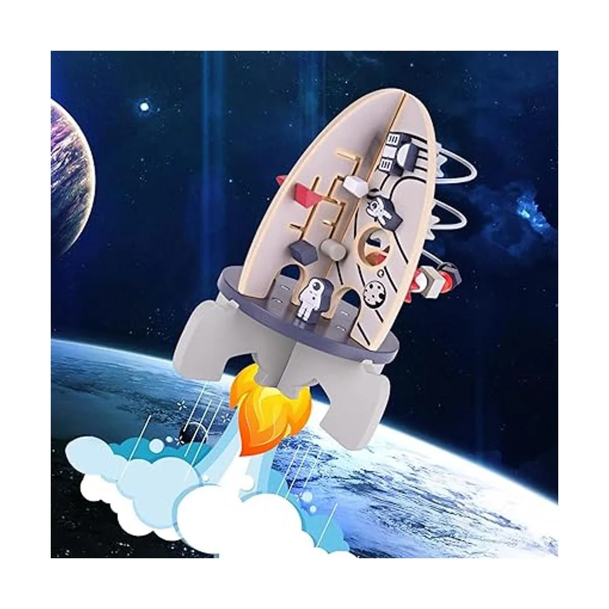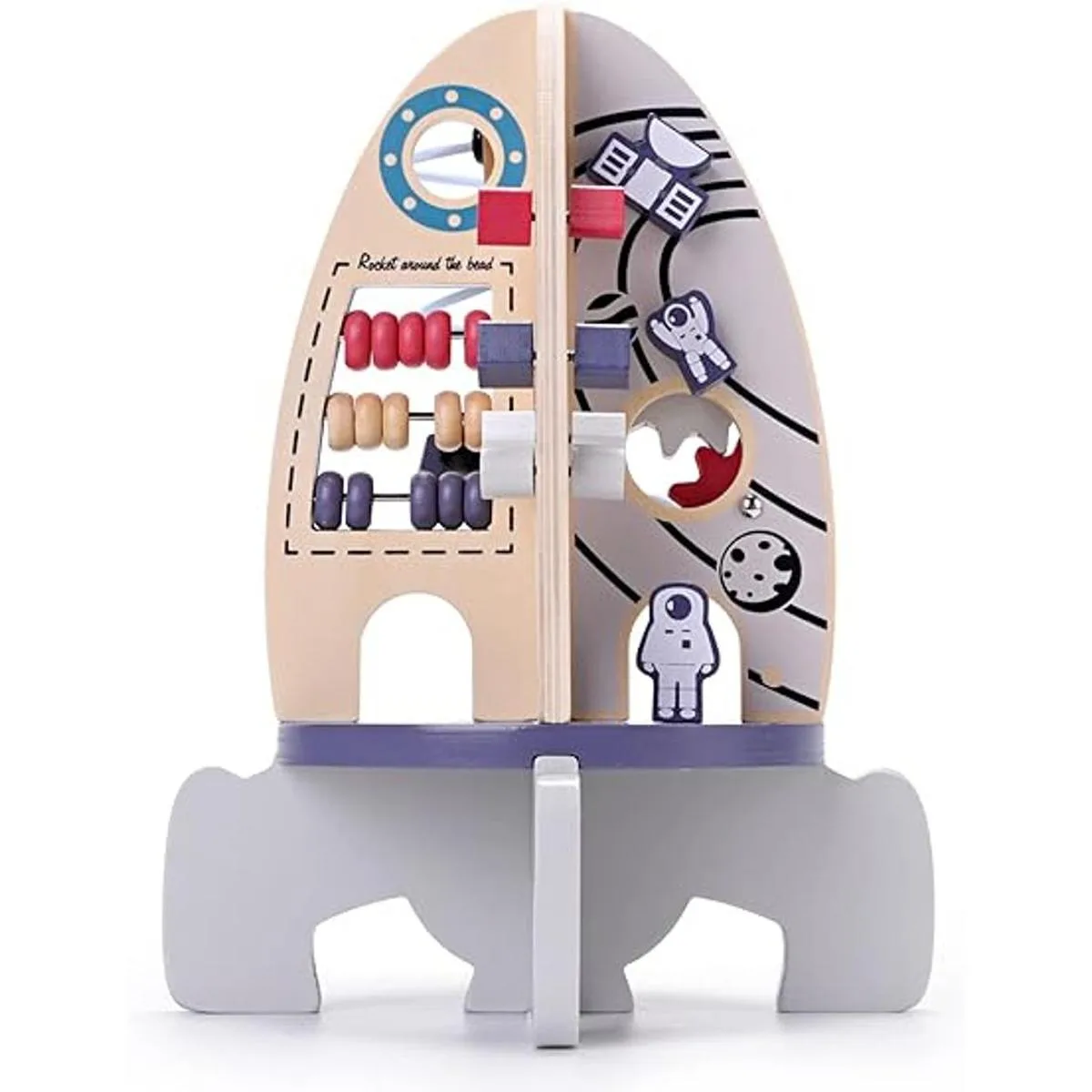 Cubo de actividad 4 en 1: nuestro cubo de actividades de cohete incluye laberinto de cuentas, combinación de formas, ábaco y equipo giratorio. En comparación con las formas cuadradas normales, la forma única de cohete es más atractiva y lleva los pensamientos de los bebés al espacio misterioso.