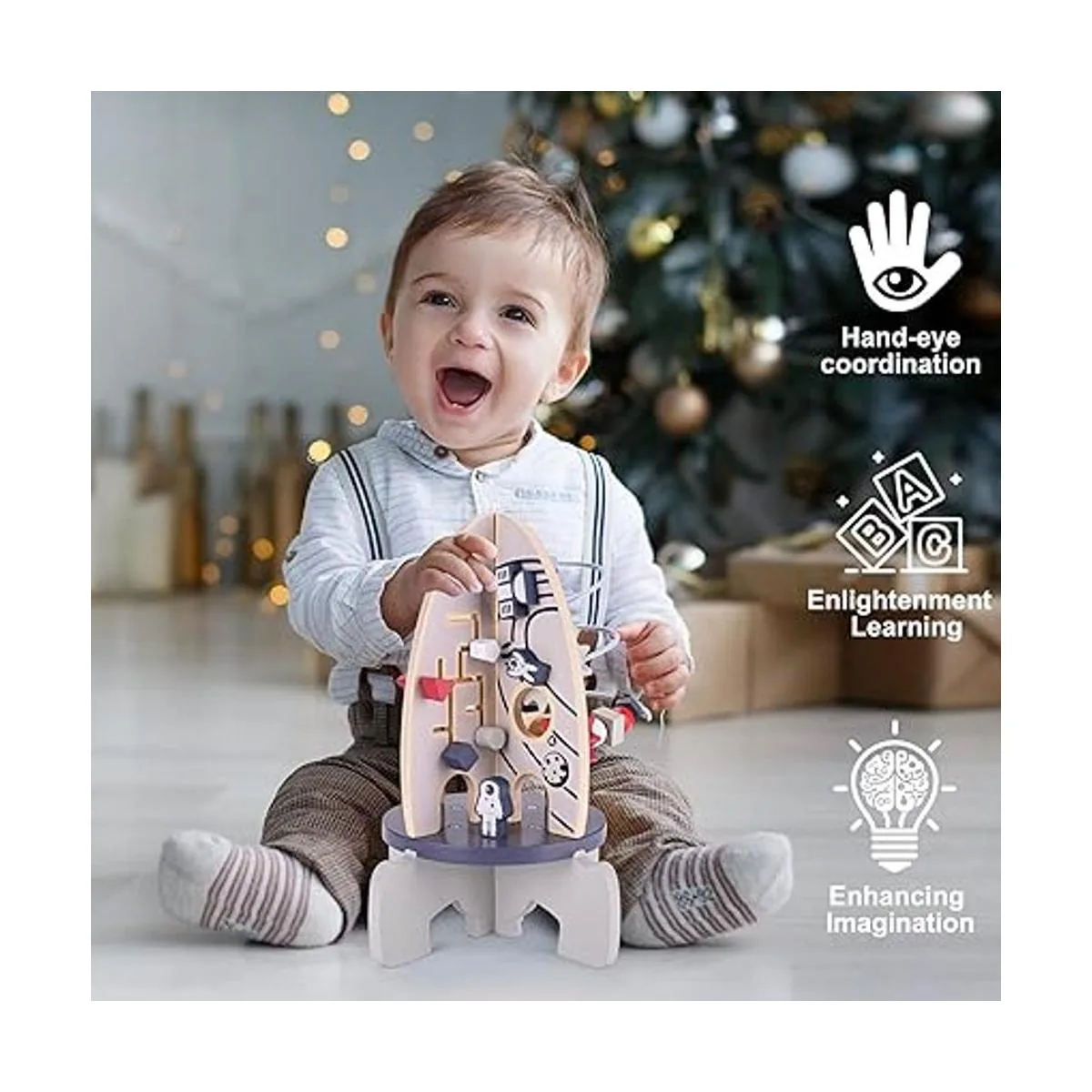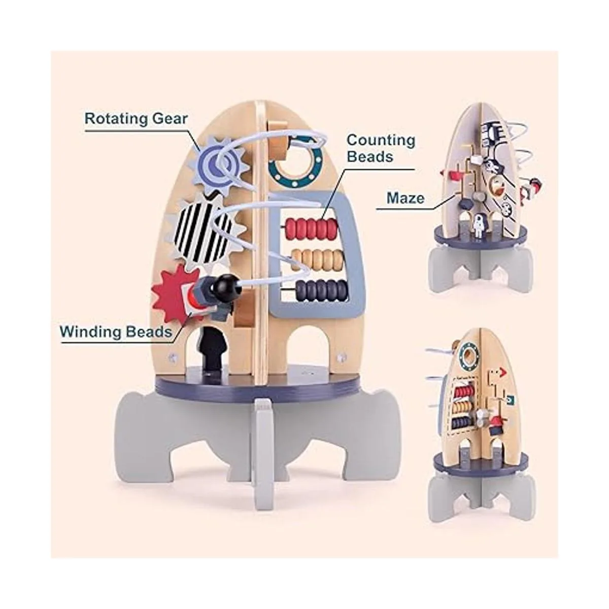 Tabla ocupada para niños pequeños para niños de 1 año, cubo de actividad Montessori de madera 4 en 1, regalo de primer cumpleaños para niños y niñas de 12 meses desarrollo educativo de aprendizaje cohete
