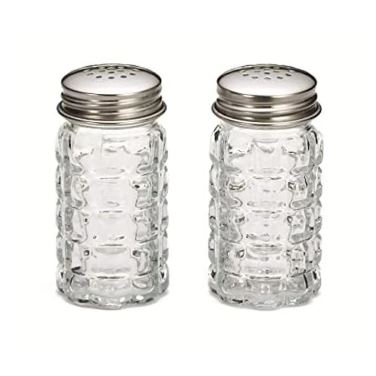 Tablecraft Nostalgia Saleros y pimenteros de vidrio con tapas S/S