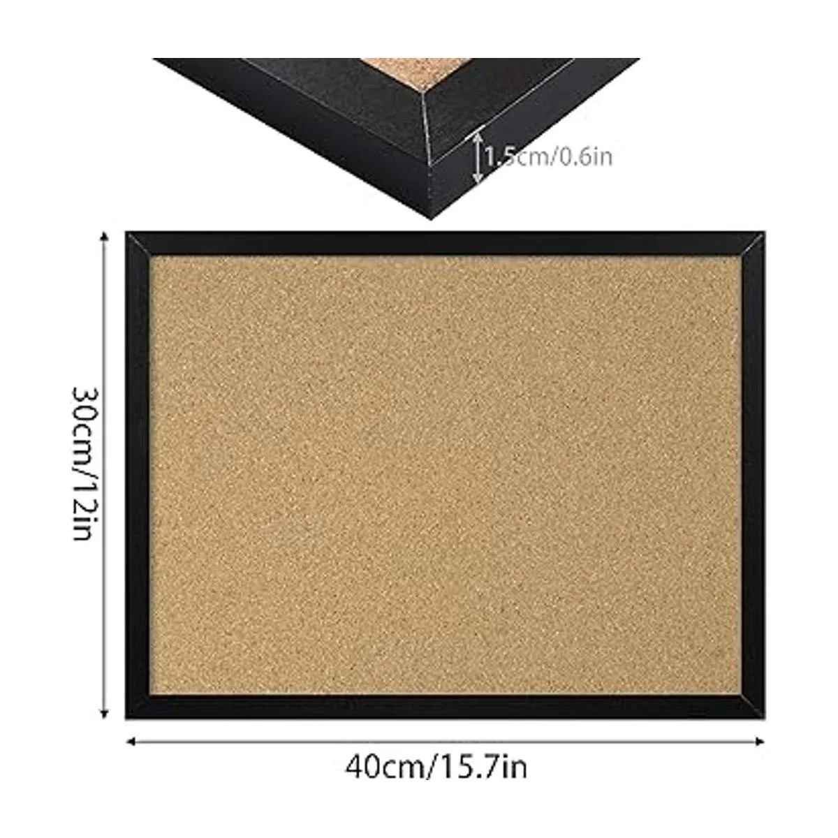 Tablero de anuncios de corcho de 15.7 x 12 pulgadas con marco negro rectangular para colgar en la oficina, el hogar, tablero de mensajes o tablero de visión