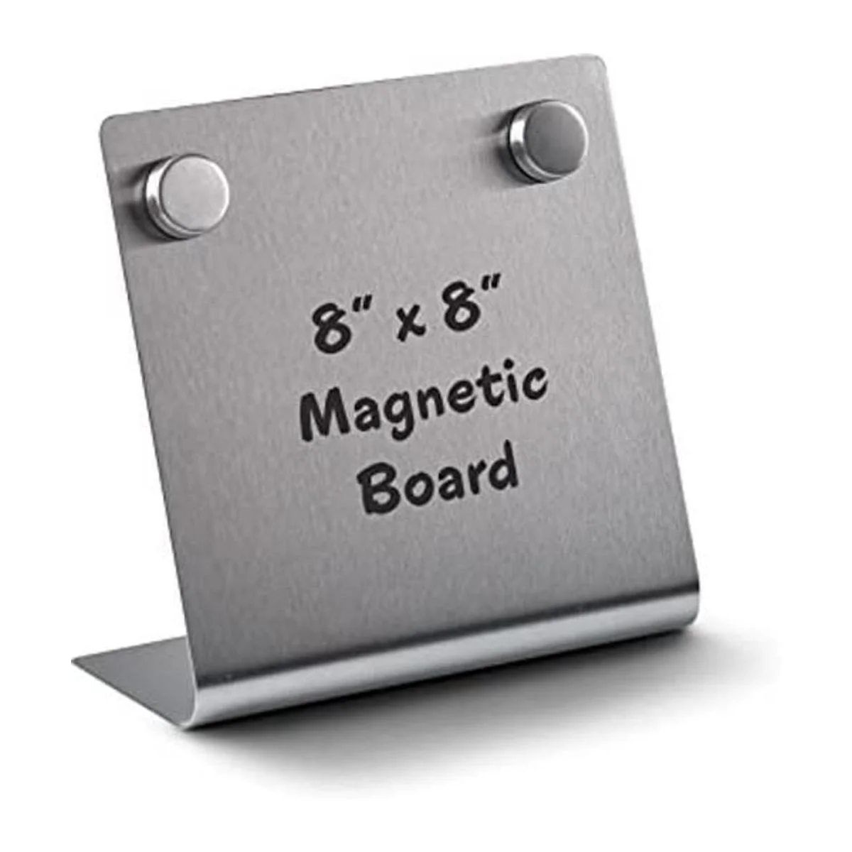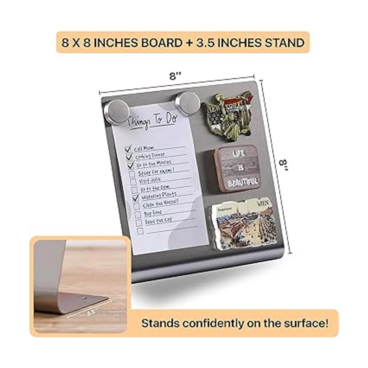 Tablero de anuncios magnético con soporte, pequeño tablero de notas de borrado en seco, caballete de metal de mesa para exhibición de imán, mini decoración del hogar, 8 x 8 pulgadas 2 imanes