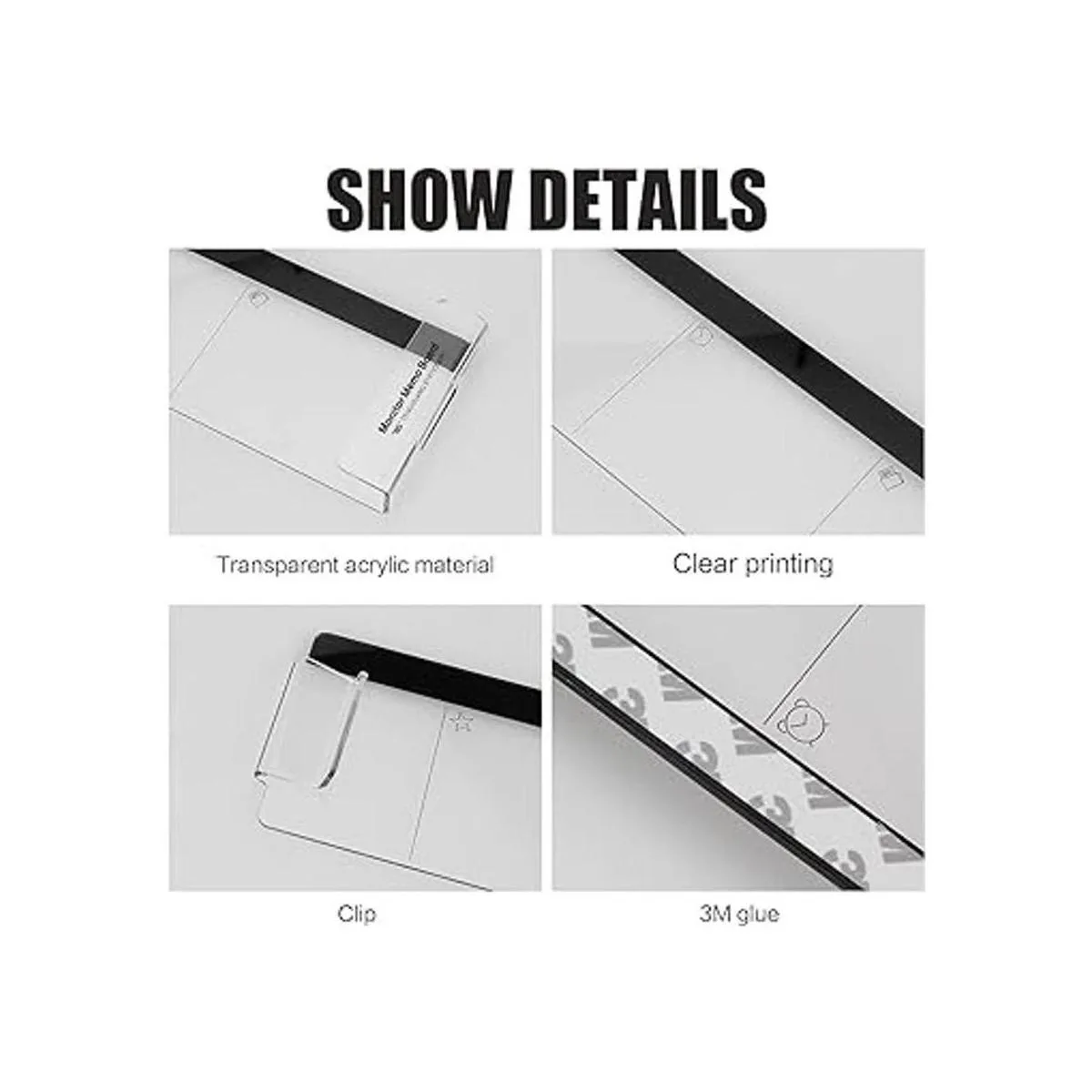 Material duradero: el panel lateral está hecho de material acrílico transparente, duradero, simple y elegante. El tablero de notas del monitor es fácil de instalar, simplemente retira el adhesivo y cuélgalo en los bordes de ambos lados de la pantalla del monitor.