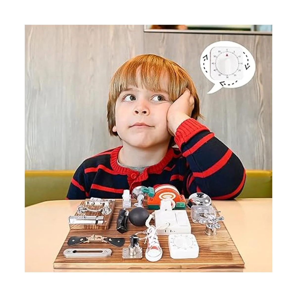 Calidad y seguridad: esta tabla de madera Montessori está hecha de materiales de madera lisos que son muy seguros. Los bordes de la tabla de actividades y los elementos son suaves y lo suficientemente resistentes para que los niños jueguen de forma segura.