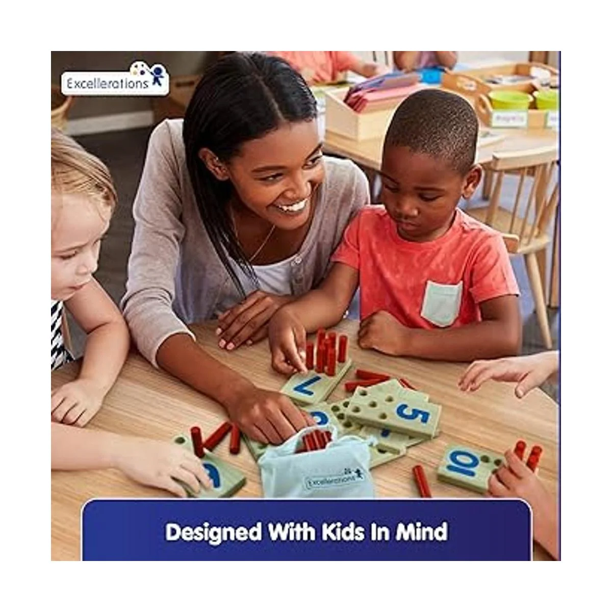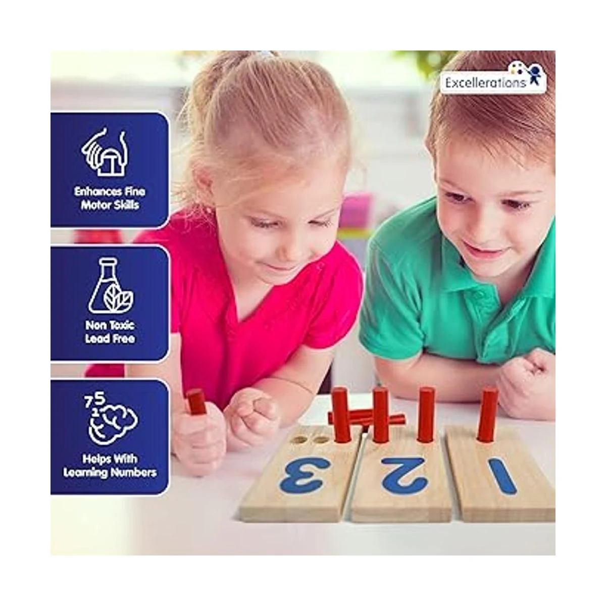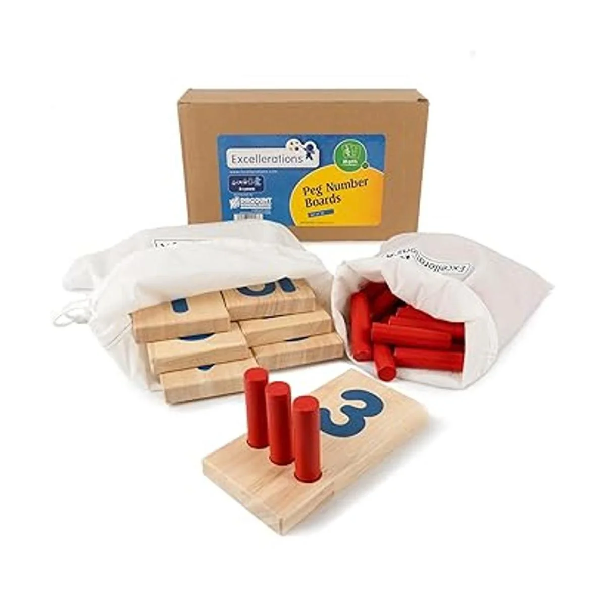 Cómo usar: los tableros de números de clavijas cuentan con hendiduras que corresponden con el número impreso en cada tabla. Los niños colocan clavijas en los agujeros.