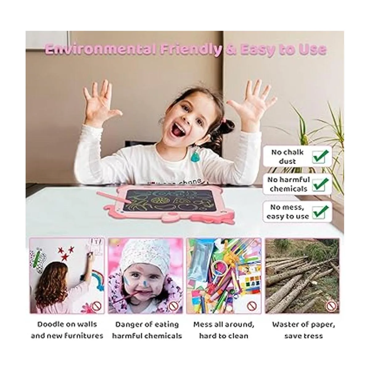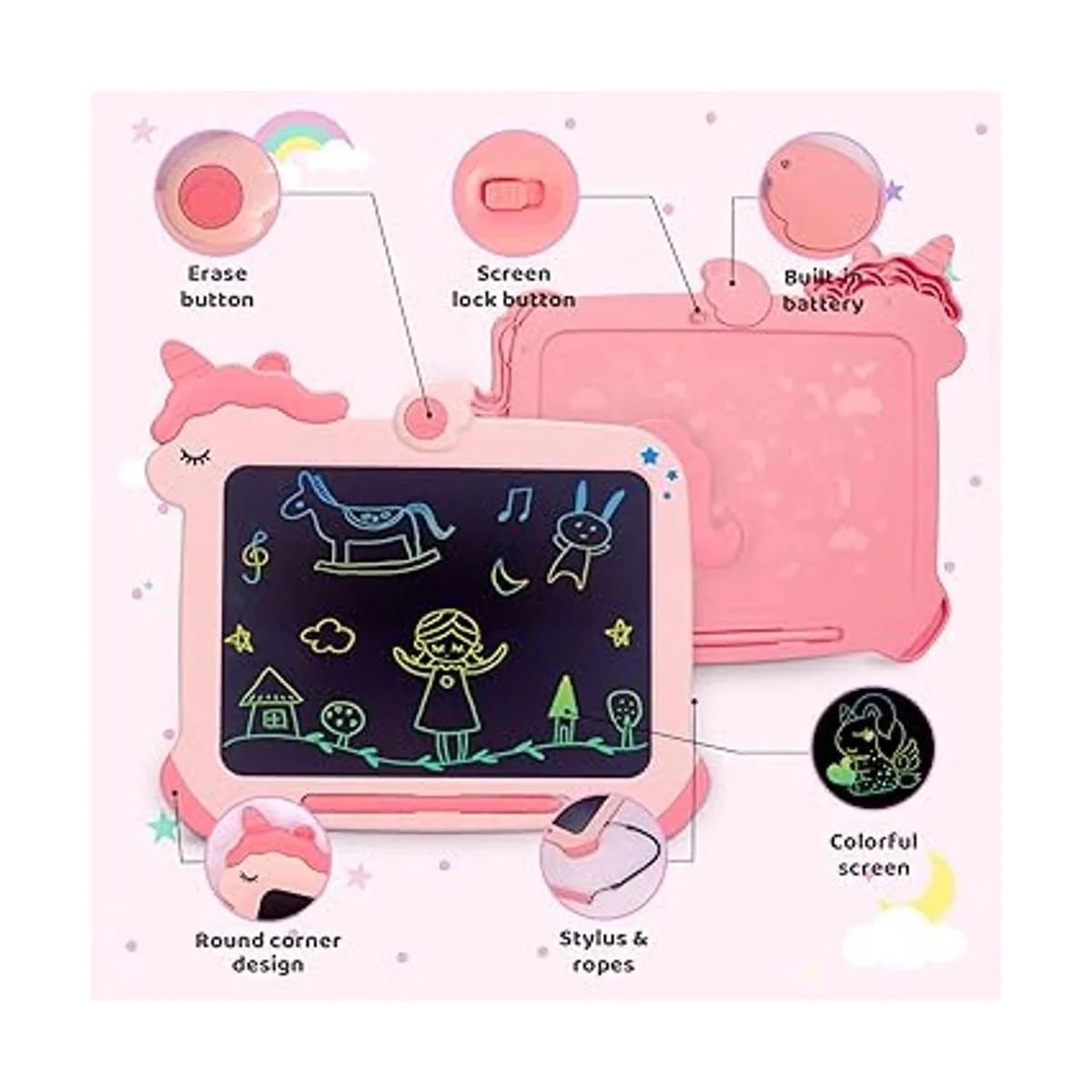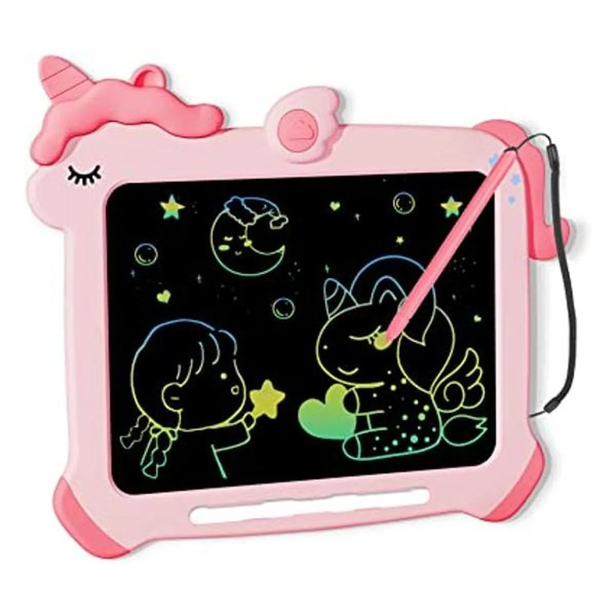 Tableta de escritura LCD para niños, tablero de garabatos de pantalla colorida de unicornio, almohadilla de dibujo electrónica borrable, juguete educativo, juguete de viaje para niños pequeños, regalo de cumpleaños de Navidad para niñas de 3, 4, 5, 6, 7 años, rosa