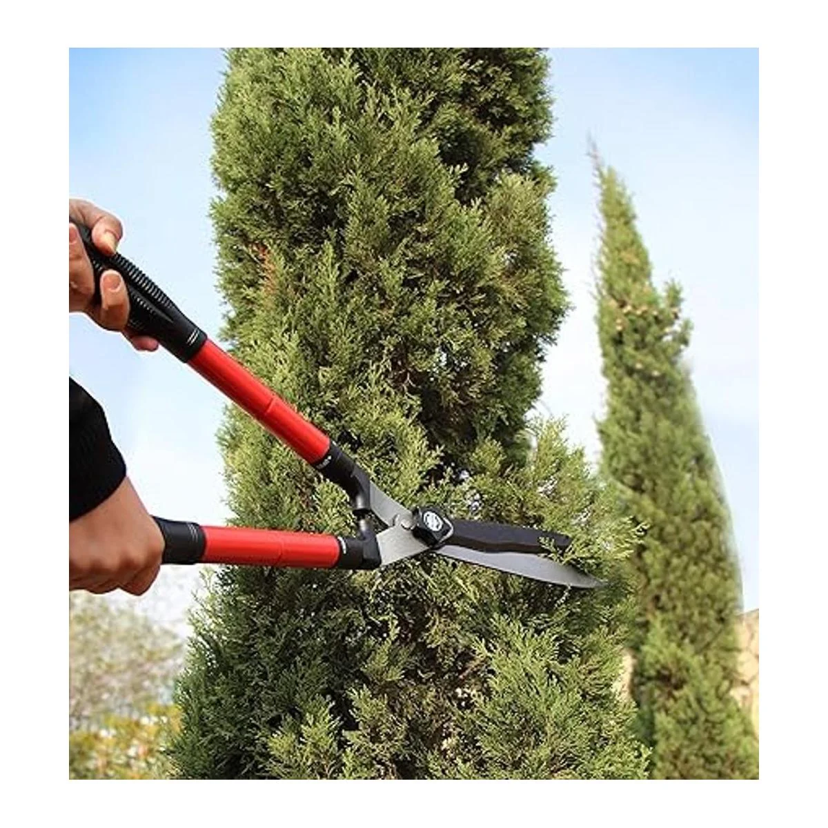 Asas telescópicas fuertes: este cortasetos es la herramienta ideal para recortar y dar forma a tus arbustos y plantas topiarias decorativas. Llega a cualquier arbusto lejos y alto. No hay cortes que no puedas hacer con estas fuertes asas extensibles: la longitud regular total en una posición cerrada es de 25 pulgadas y la longitud total en modo extendido es de 33 pulgadas.