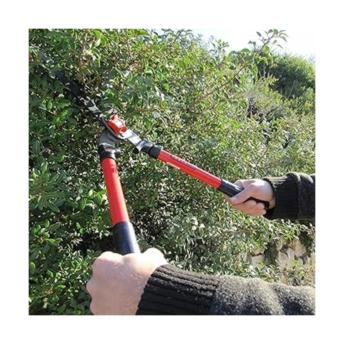 Asas de acero fuertes. Las fuertes asas de acero ofrecerán una potencia de corte confiable cada vez que necesites hacer frente a un trabajo de corte de setos. Cada corte será una experiencia alegre y tus arbustos volverán a crecer muy bien: no piratees tus hermosos arbustos con cortasetos motorizados. Los cortes de precisión de esta herramienta preservarán la salud de tu planta para obtener resultados duraderos.