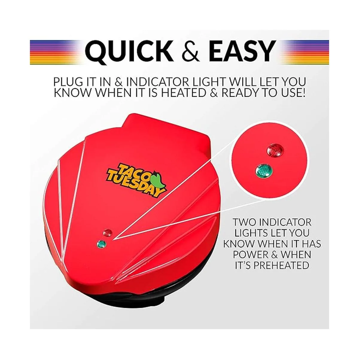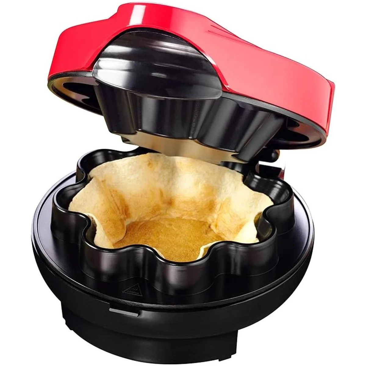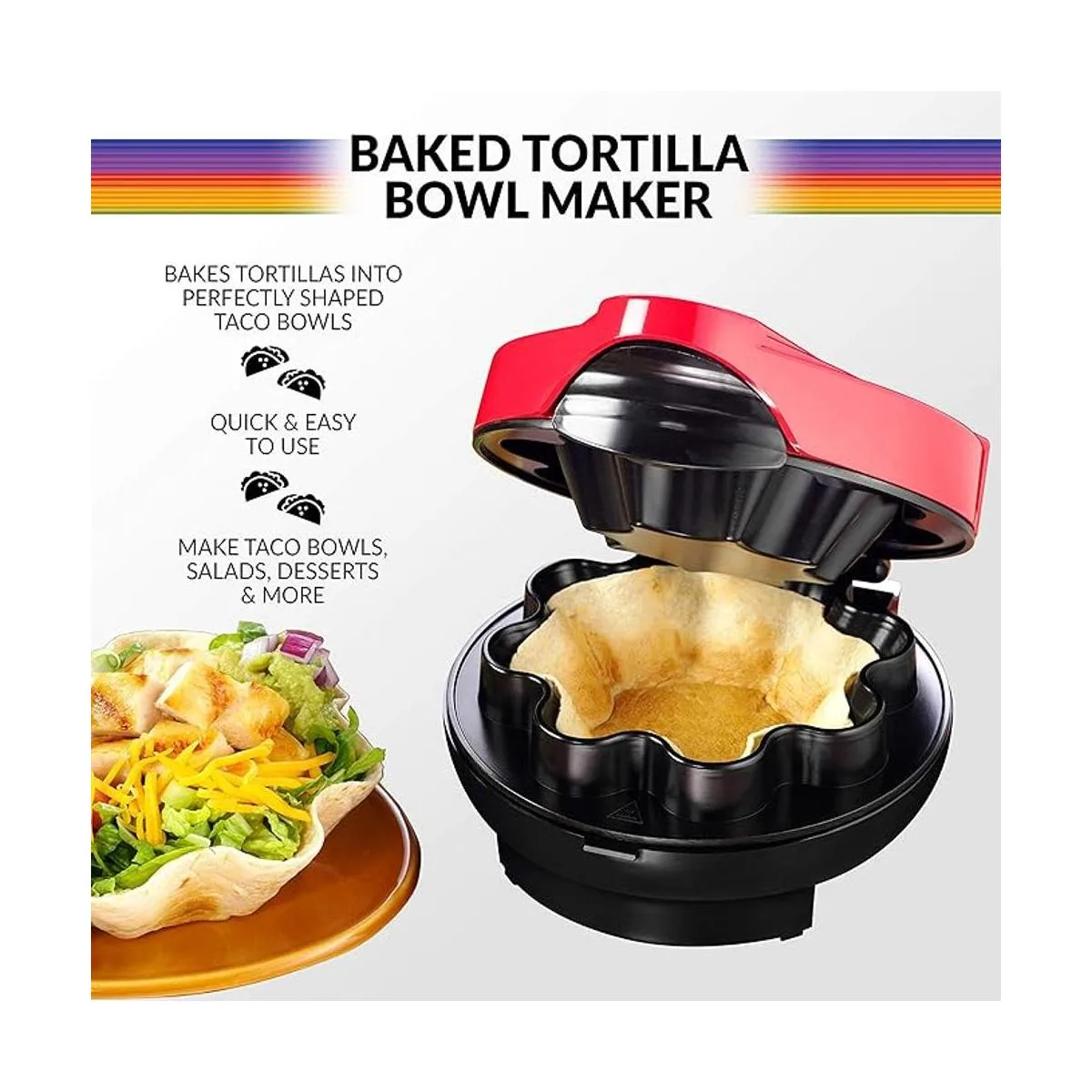 Taco Tuesday Máquina para cuencos de tortillas, para usar con tortillas de 8 a 10 pulgadas, ideal para tostadas, ensaladas, salsas, bocadillos y postres, 10 pulgadas, color rojo