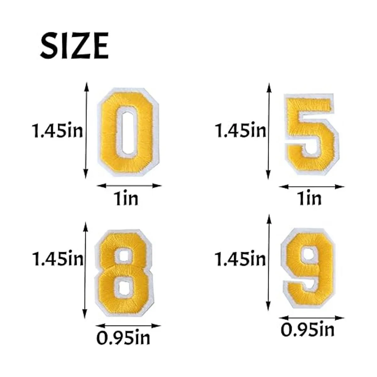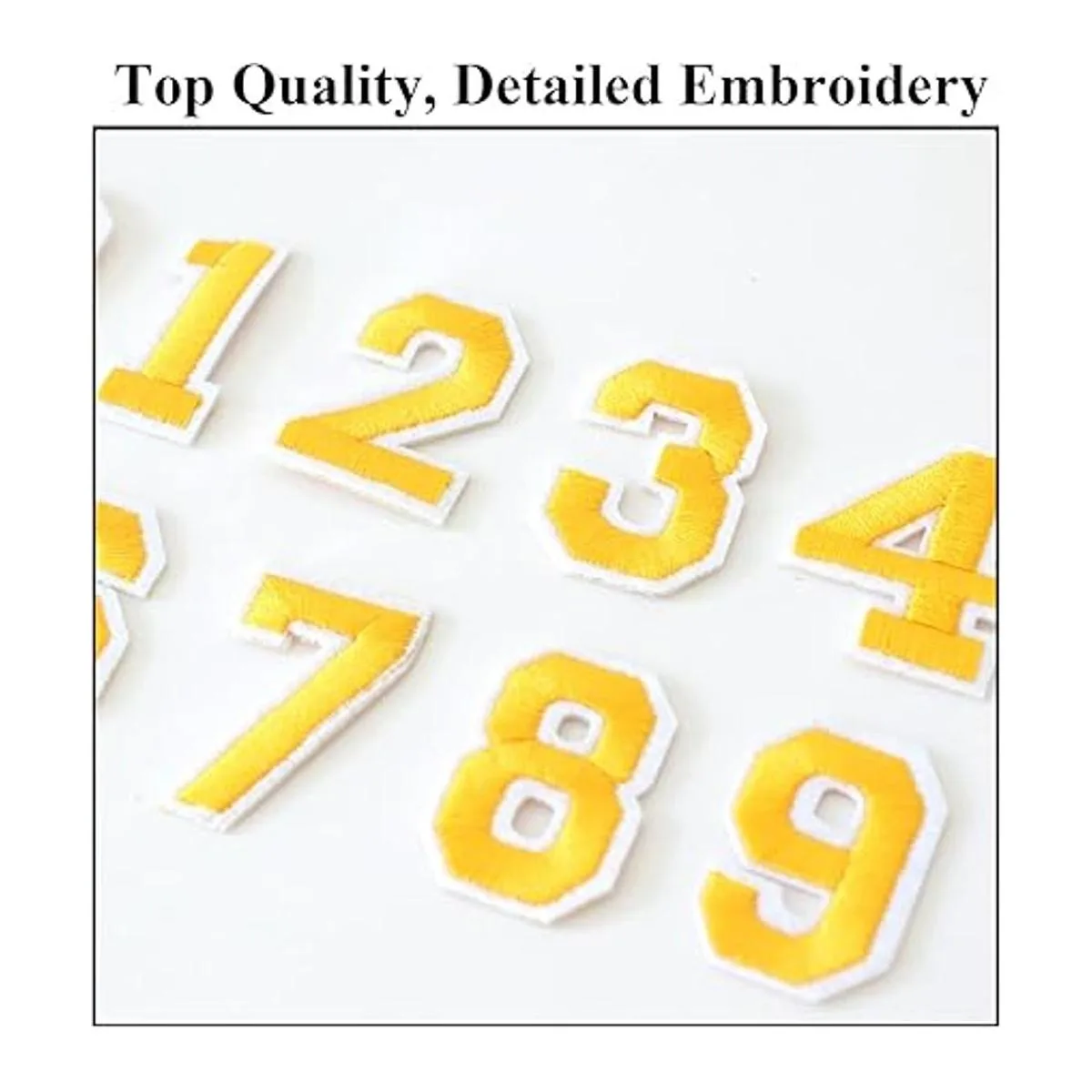 TACVEL 40 parches de números amarillos para planchar con números del 0 al 9 para ropa, vestido, sombrero, calcetines, jeans, accesorios de bricolaje
