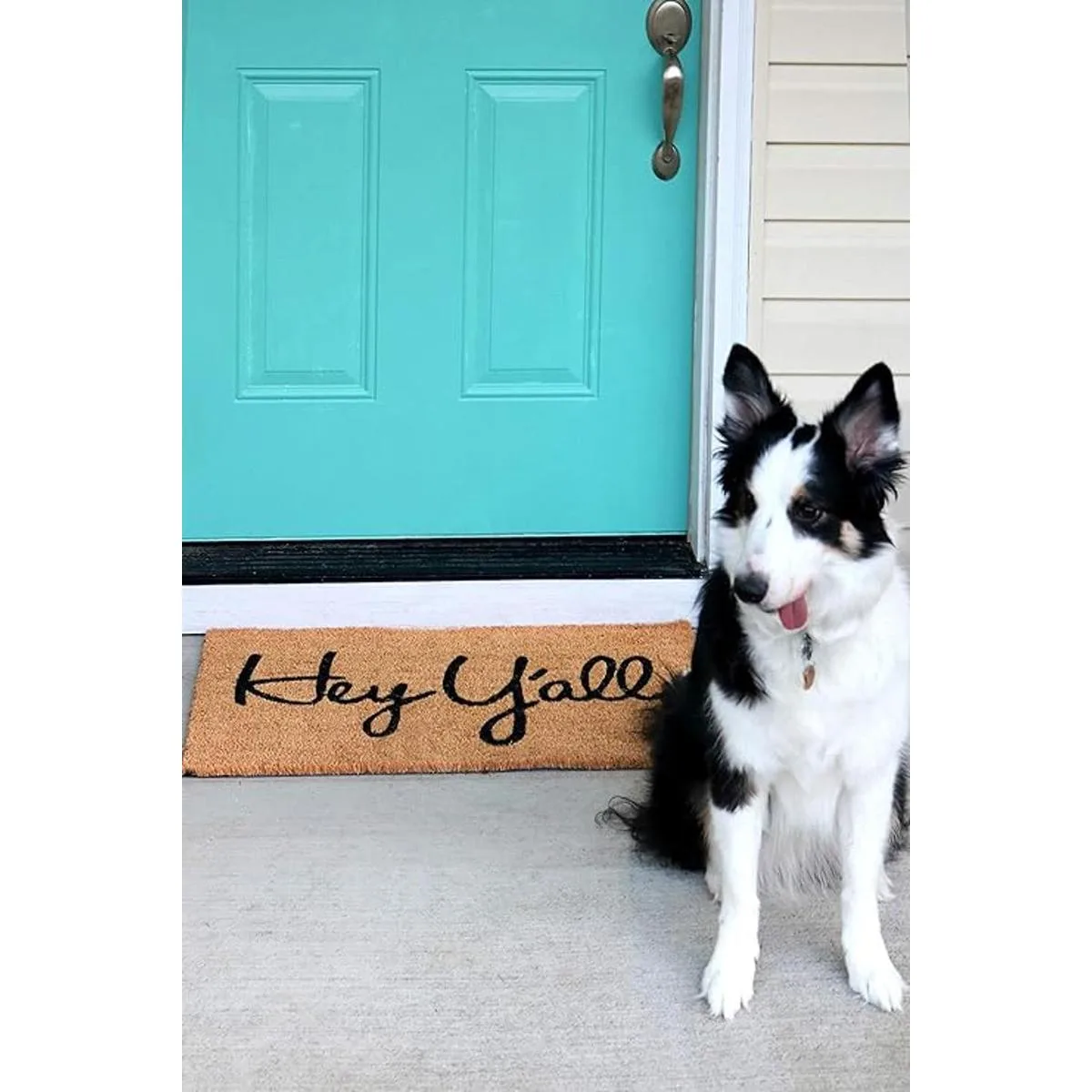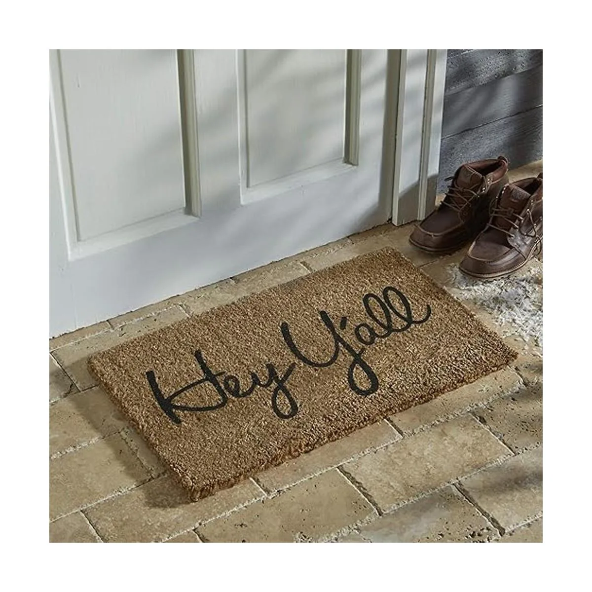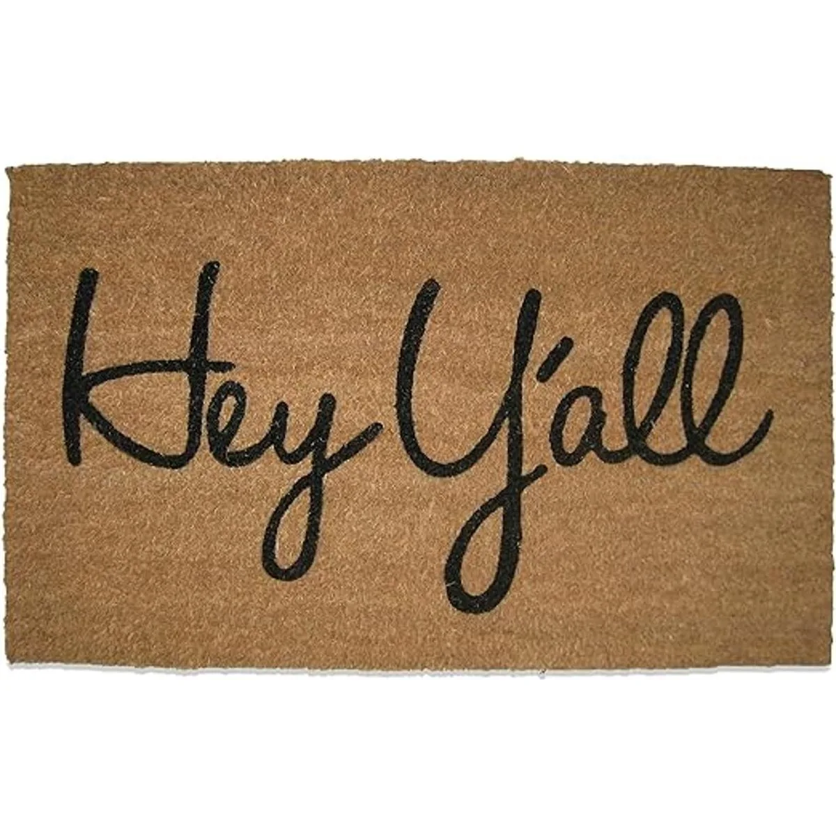 tag Hey Yall Felpudo de fibra de coco del sur de 17.5 x 30 pulgadas, tapete de bienvenida para puerta delantera, 1 pies 6 pulgadas x 2 pies 6 pulgadas, color marrón