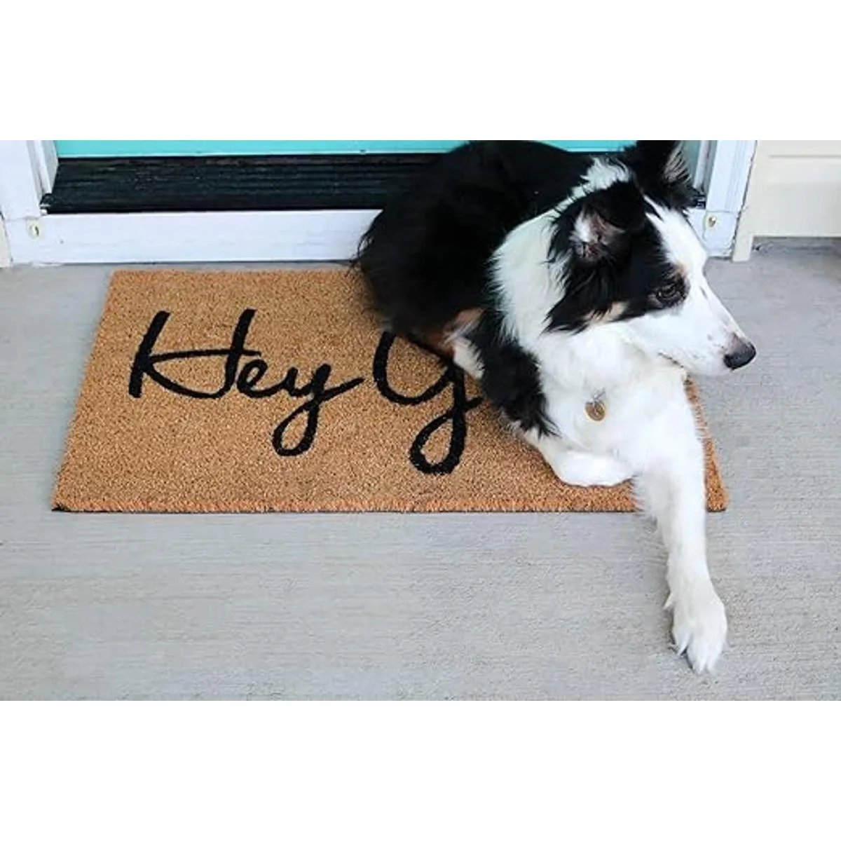 Materiales naturales de calidad: este bonito y divertido felpudo Hey Yall está hecho de fibra de coco, un material natural renovable extraído de cáscara de coco que es fácil de mantener. Este proceso de producción ecológico crea patrones resistentes a la decoloración como este diseño.
