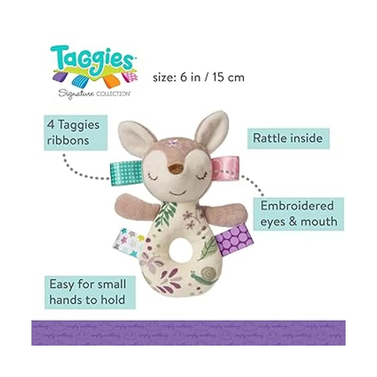 Taggies Sonajero suave bordado, Flora Fawn