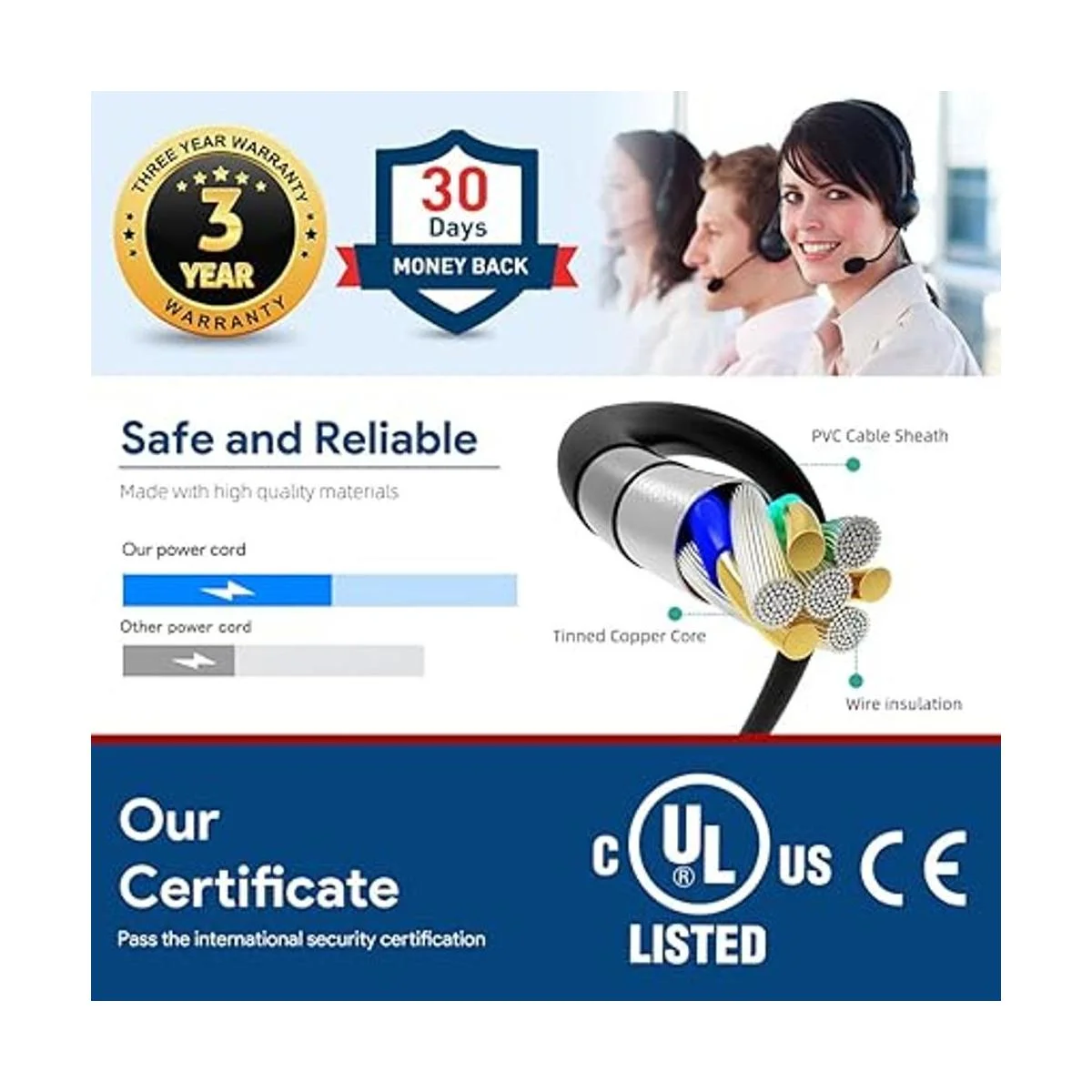 Seguridad/listado UL: este producto TAIFU ha sido probado, aprobado y certificado para cumplir con sus estándares de seguridad eléctrica y diseño tanto en los Estados Unidos como en Canadá. El número UL es único. UL LLC es una empresa de asesoramiento y certificación de seguridad global, que realiza pruebas de seguridad por la Agencia Federal de los Estados Unidos de Administración de Seguridad y Salud OSHA