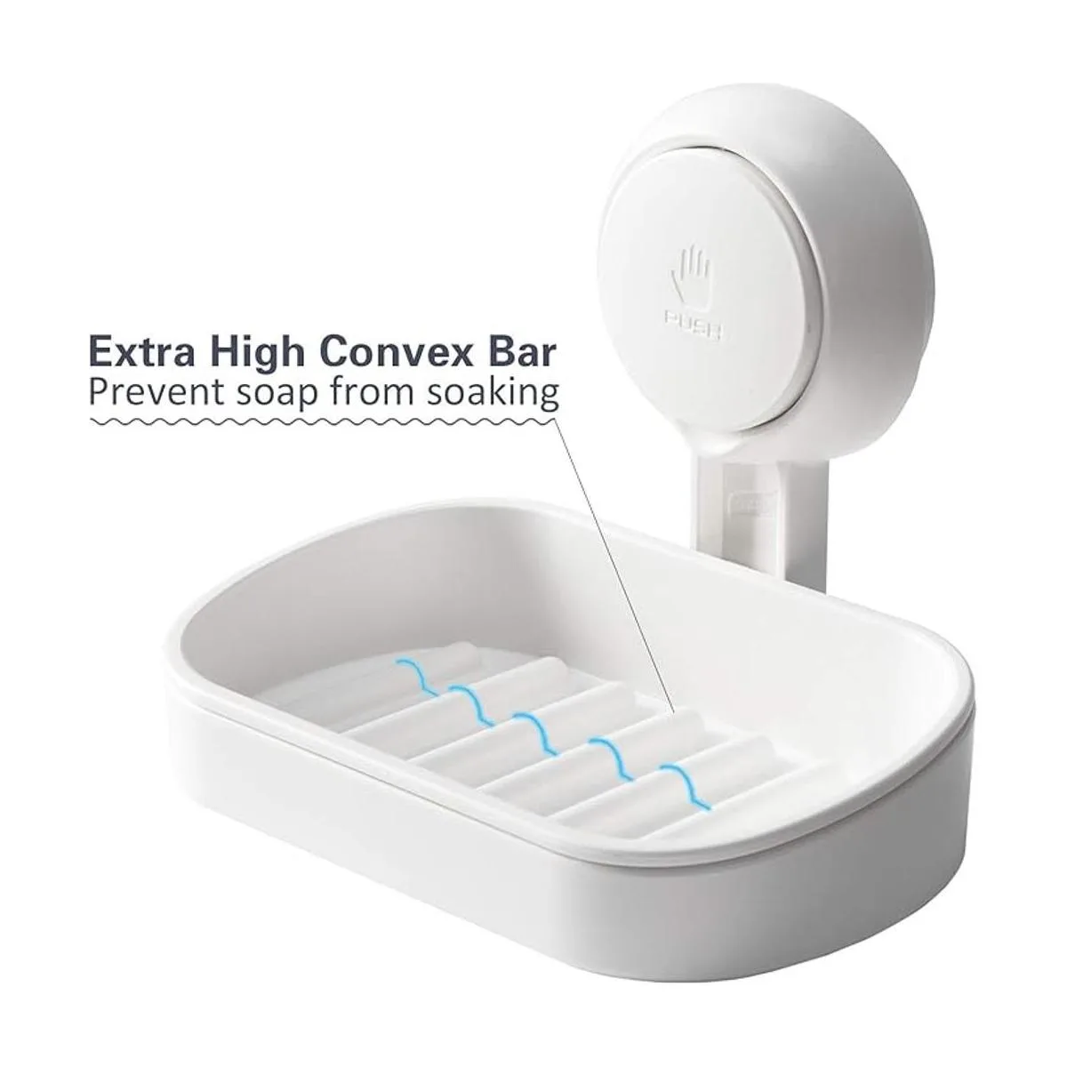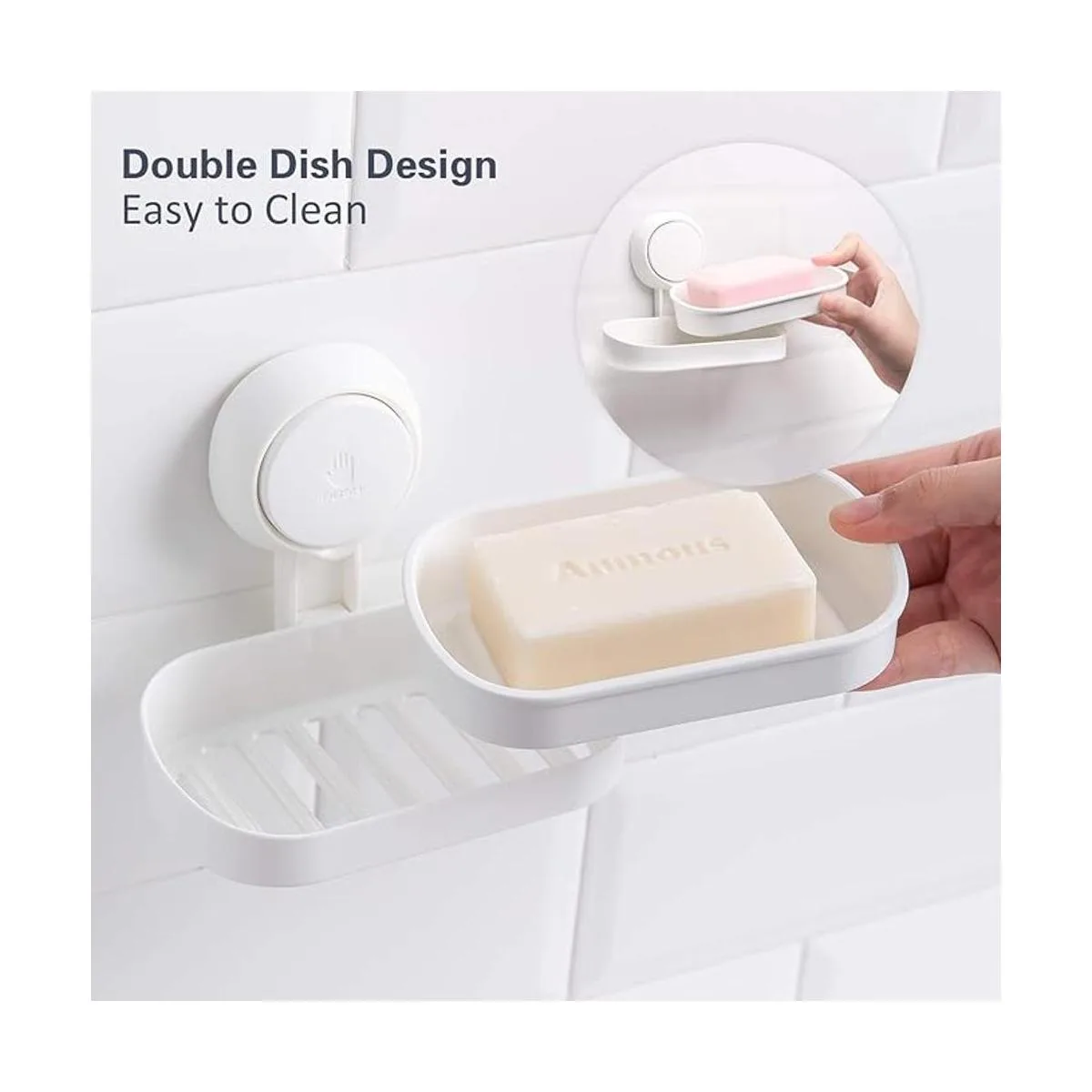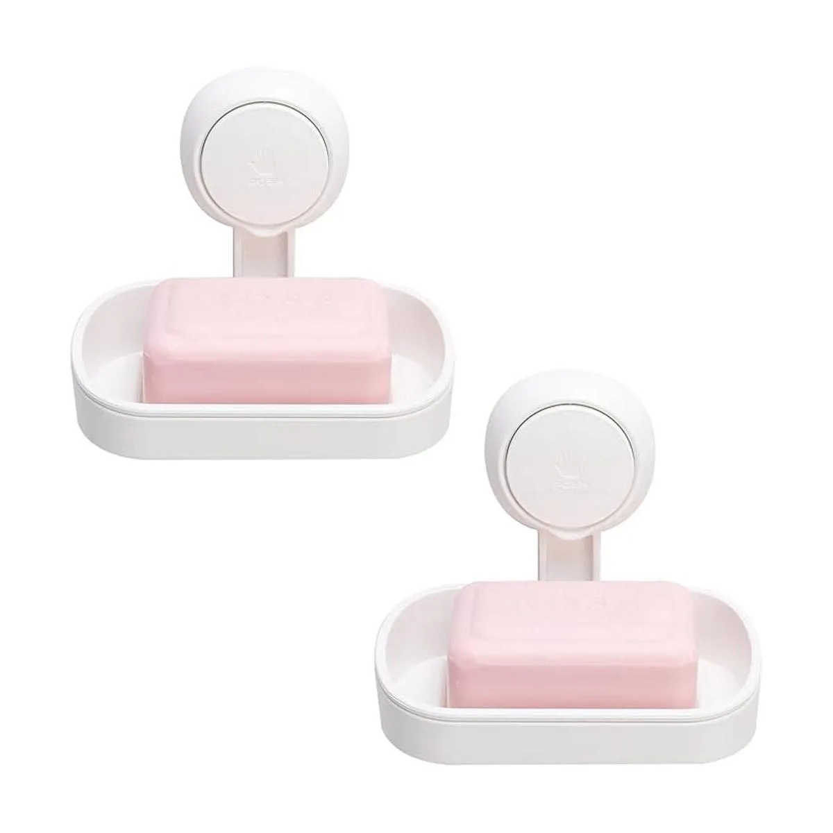 TAILI Paquete de 2 jabones con ventosa, jabonera con succión al vacío, soporte de jabón de barra de plástico para ducha montado en la pared sin taladros, jabonera para ducha, baño, bañera y fregadero de cocina, extraíble, color blanco