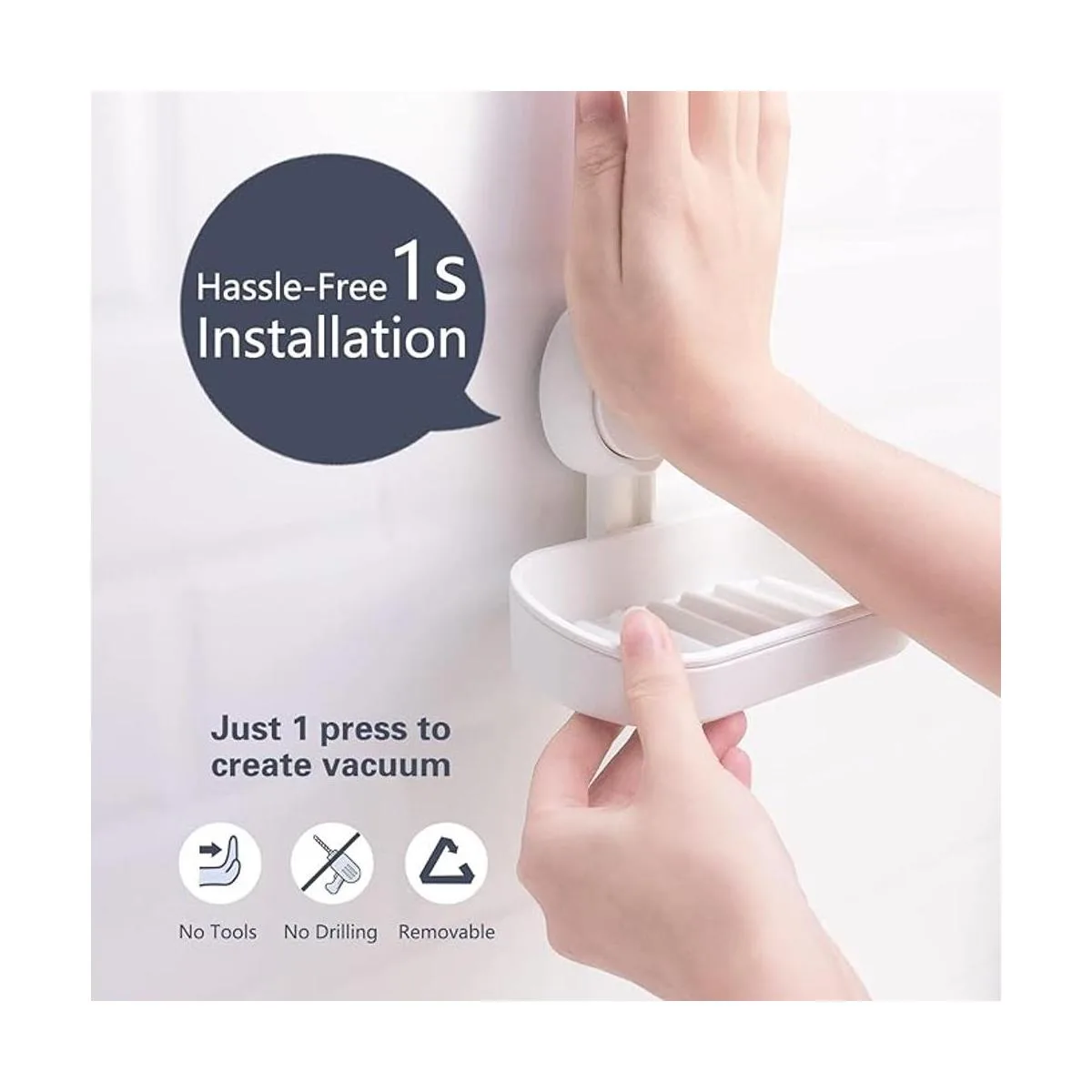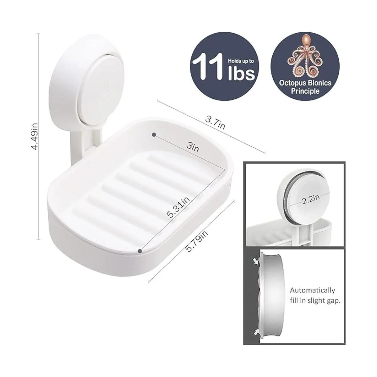 Durabilidad y fuerte succión. La jabonera está hecha de material ABS grueso de alta calidad. Nuestra ventosa basada en el principio de succión de pulpo biónico está hecha de material TPE antienvejecimiento, que soporta hasta 11 libras. La bandeja de jabón es resistente al agua, por lo que se puede utilizar en zonas húmedas como baño y cocina.