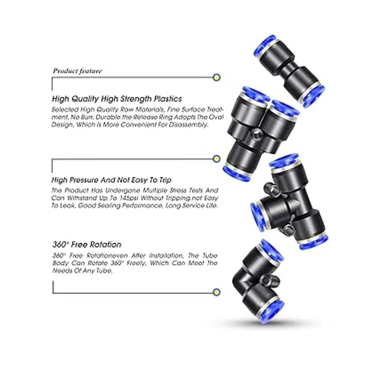 Otros: fácil de instalar: disponible en varios estilos y modelos. Cada modelo sirve para su propósito. Todos los modelos de accesorios de bloqueo de empuje están diseñados para adaptarse perfectamente a tus necesidades de tuberías neumáticas