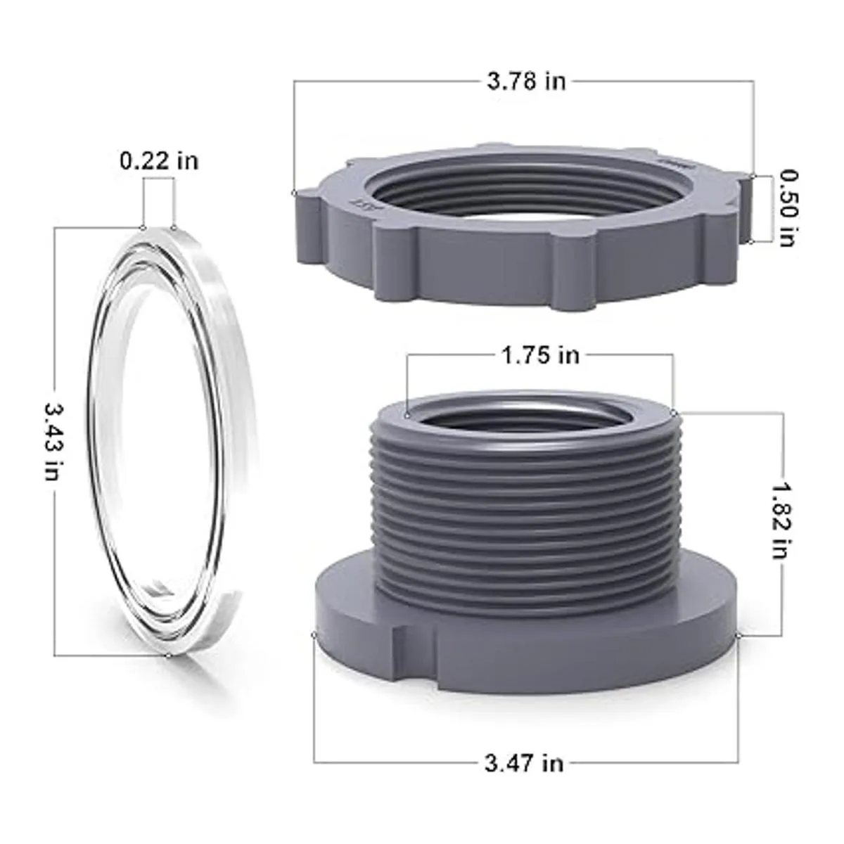 TAISHER 2 conectores de tanque de mamparo de PVC negro de 112 pulgadas con junta para tanque de agua, barriles de lluvia, acuarios, bañeras y fregadero