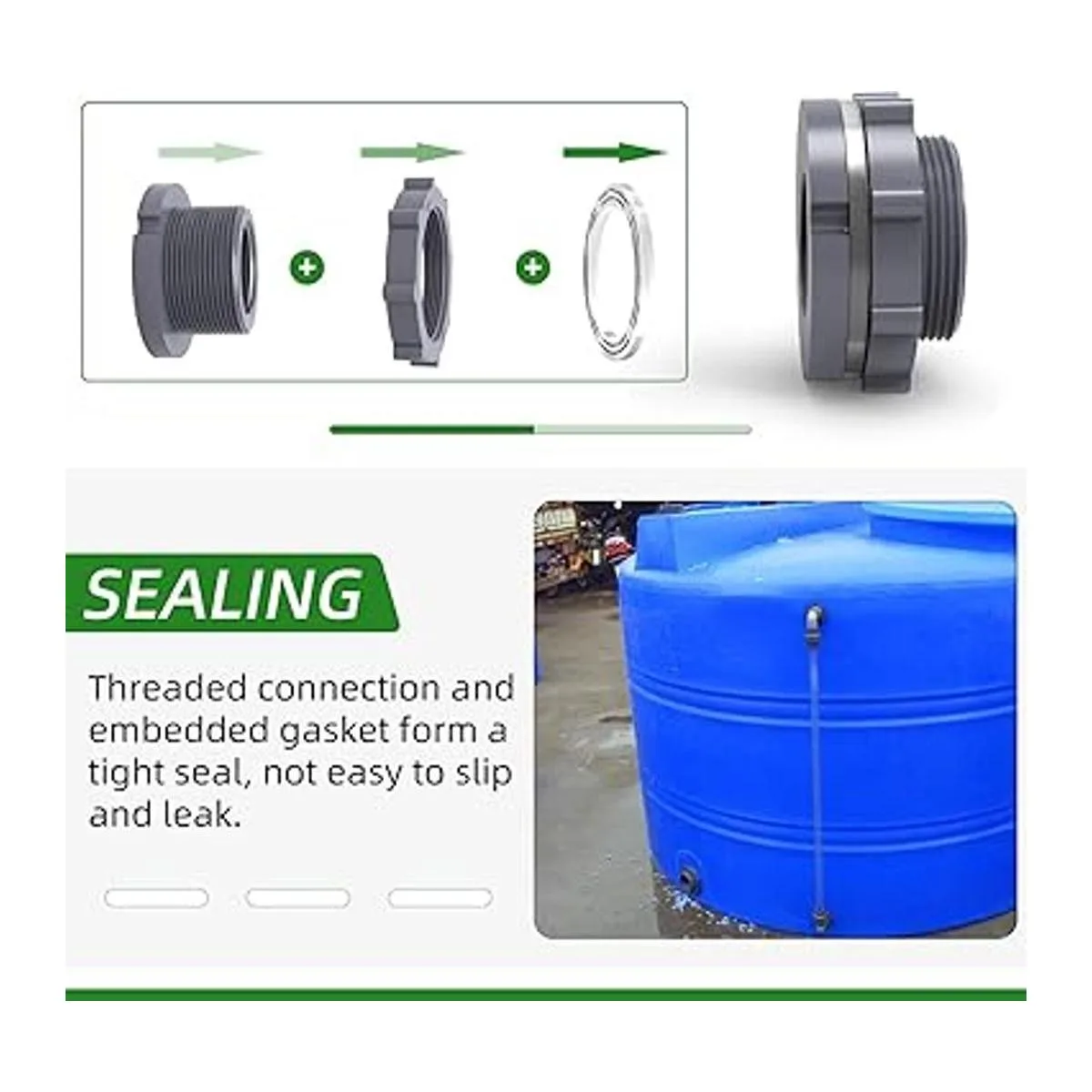 Tipo de producto: conector de tanque de agua de mamparo, adecuado para la instalación en tanques de agua, torres de agua, cubos, peceras, etc.