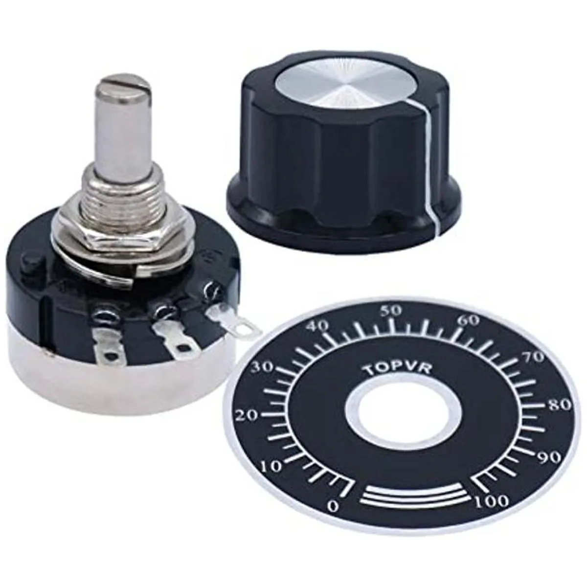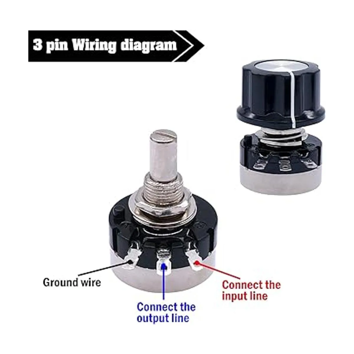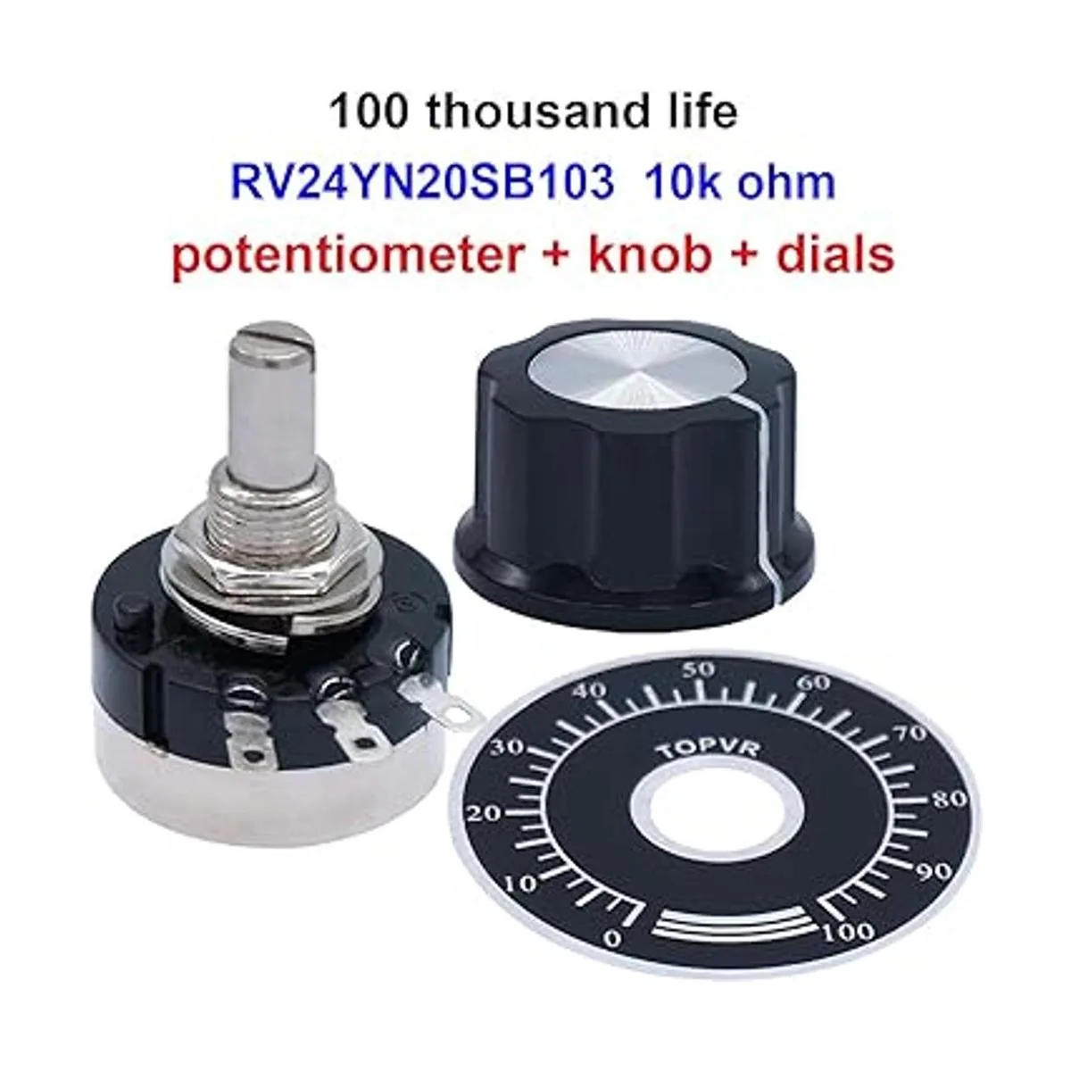 Taiss 2 piezas RV24YN20S Potenciómetro de 10K de película de carbono de una sola vuelta Potenciómetro cónico giratorio utilizado para regulación de velocidad del inversor, control de velocidad del motor 2 pomos A03 2 esferas B103 10K ohmios