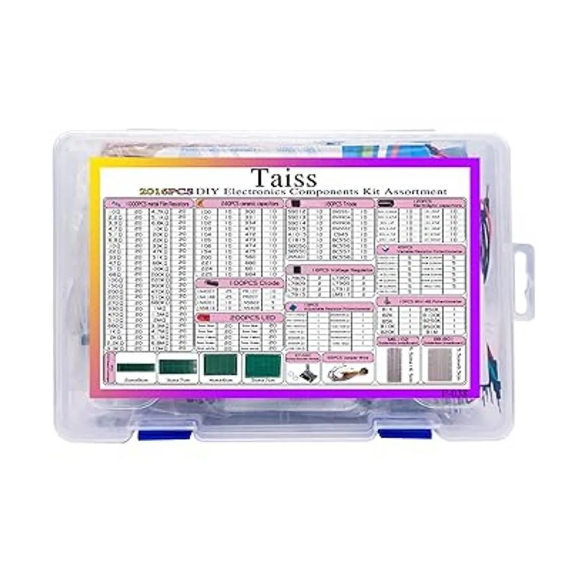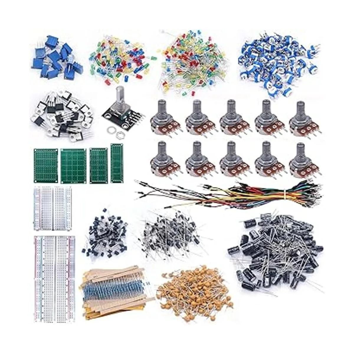 Taiss Surtido de kit de componentes electrónicos, potenciómetro, codificador giratorio, resistencia, condensadores, diodo, LED, transistor, regulador de voltaje, prototipo de placa PCB, tabla de pan sin soldadura, cable de puente