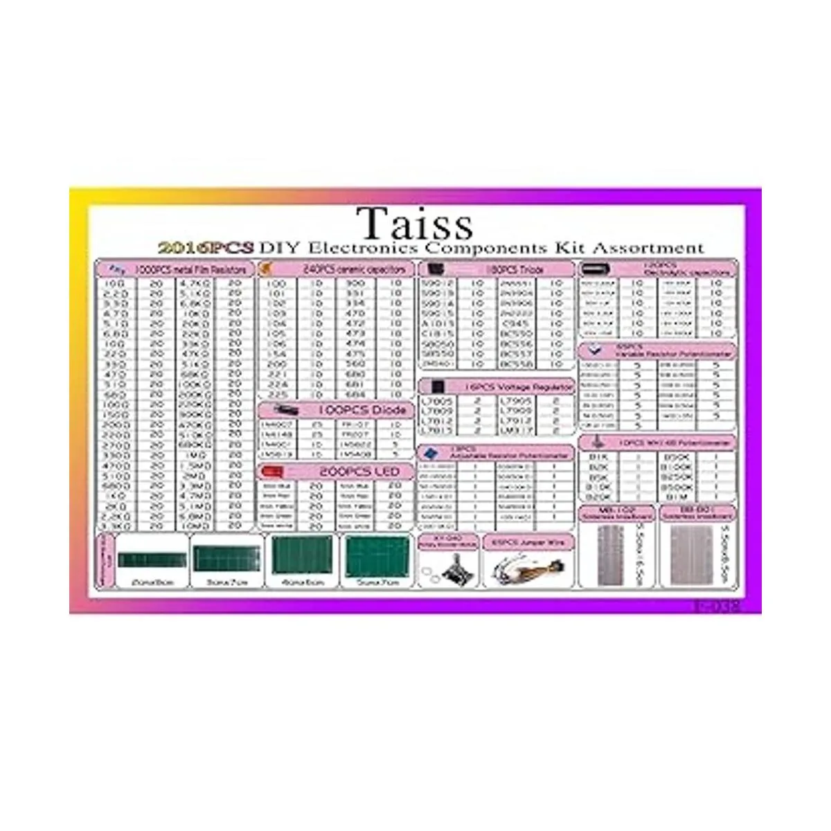 El kit electrónico contiene 14 productos cada uno con un modelo diferente y hay componentes 2016 en total.