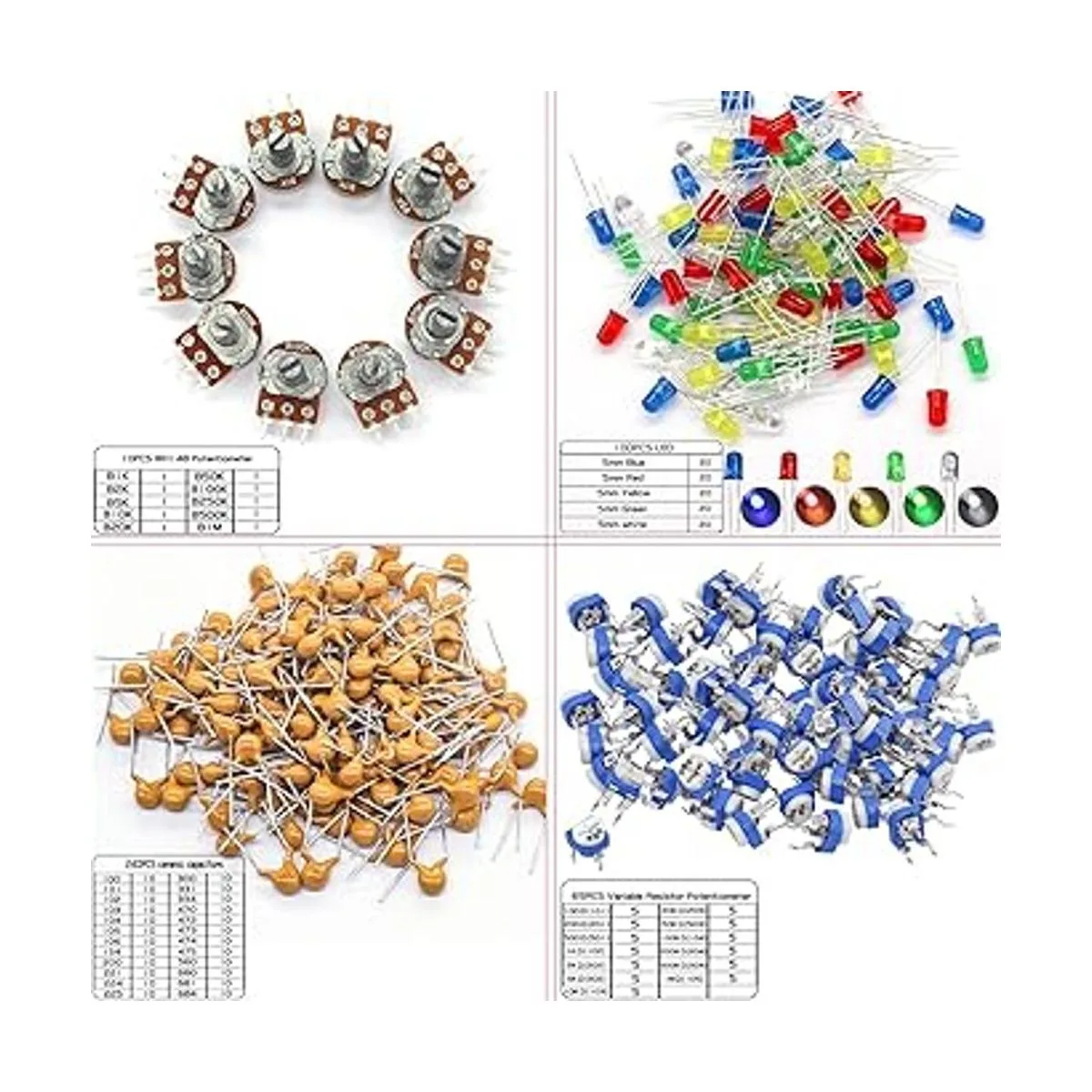 Surtido por profesionales, este es un excelente regalo diseñado para entusiastas de la electrónica. La caja contiene los componentes electrónicos más comunes.