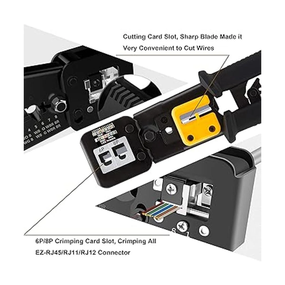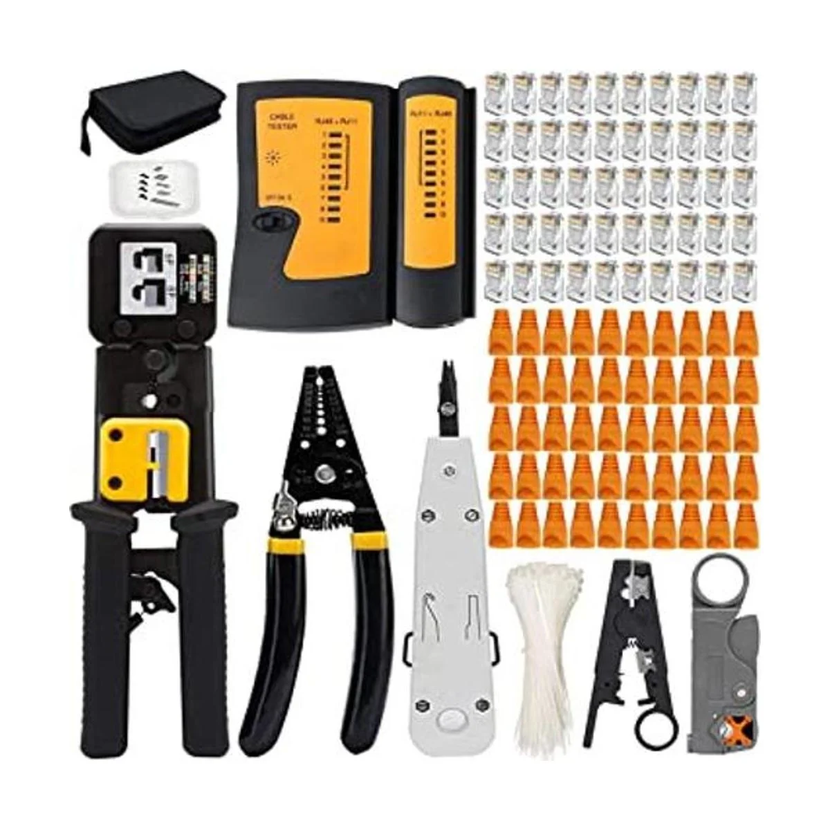 Garantía de calidad: herramienta de crimpado RJ45 de alto rendimiento utilizando troquelado de precisión, pelar y terminar cables de cobre de extensión RJ11/12 y RJ45 para proporcionar soporte de conector de 360 grados durante el ciclo de crimpado. Los kits de reparación de red en el mercado los hacen más potentes que otros productos.