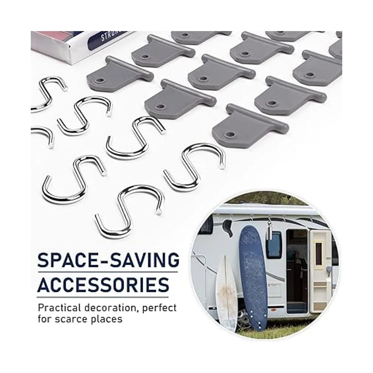 Accesorios para caravanas: amplias aplicaciones: nuestros ganchos para toldo de camping son adecuados para tiendas de campaña, autocaravanas, caravanas, remolques, fiestas de caravanas, para colgar muchas cosas como toallas de baño, bata, paraguas, ropa, bufanda, bolsa de compras, bolso, sombrero, llaves, abrigo, pantalones, utensilios de cocina y otras necesidades diarias y manualidades en la vida cotidiana.