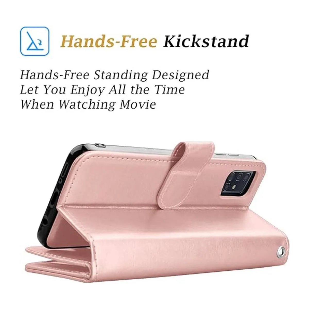 Takfox Funda para Galaxy A71 5G, para Samsung A71 5G, funda tipo cartera, piel sintética, 9 ranuras para tarjetas, tarjetero, funda magnética desmontable y cordón para Samsung Galaxy A71 5Goro rosa