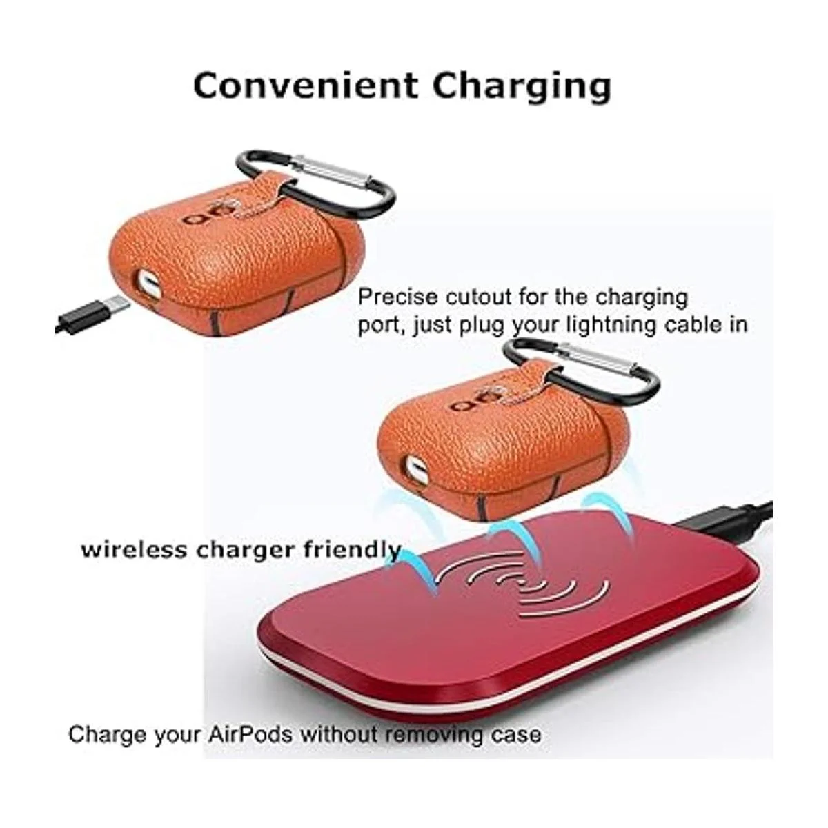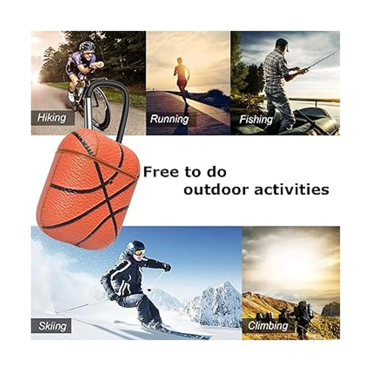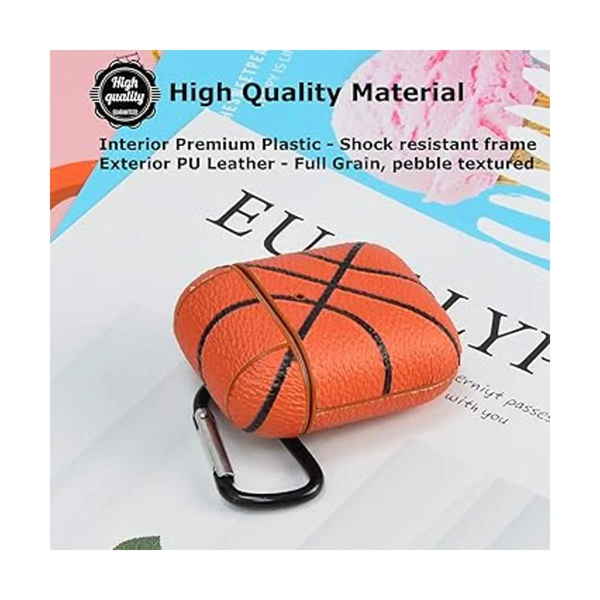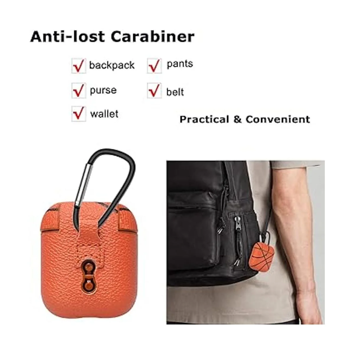 Takfox Funda protectora para Airpod a prueba de golpes, resistente a los arañazos, funda de piel de alta calidad para auriculares con mosquetónllavero para Apple Airpods 2 y AirPods 1, funda de carga, baloncesto