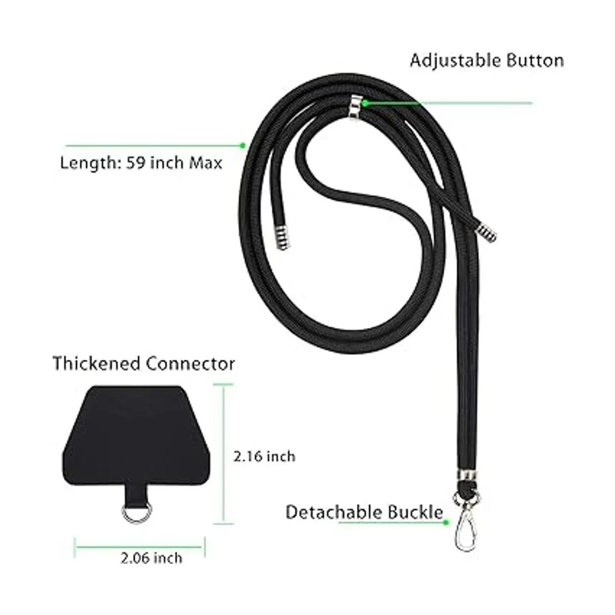 3.The thickened connector can fit almost full coverage phone case, very durable and easy to put on or take off, keep the phone stay around your neck safely.