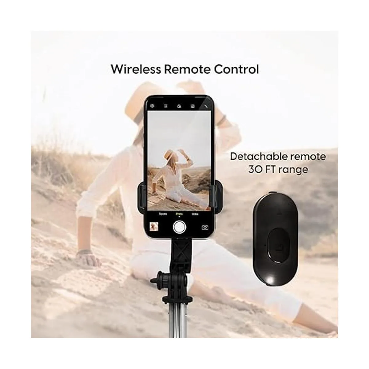 Compatible con iOS y Android: pulsa el control remoto durante 3 segundos para encender y emparejar con tu smartphone, sin necesidad de cables. Mantén el control remoto inalámbrico asegurado en el mango para el modo de palo selfie o retira para uso de larga distancia en el trípode.