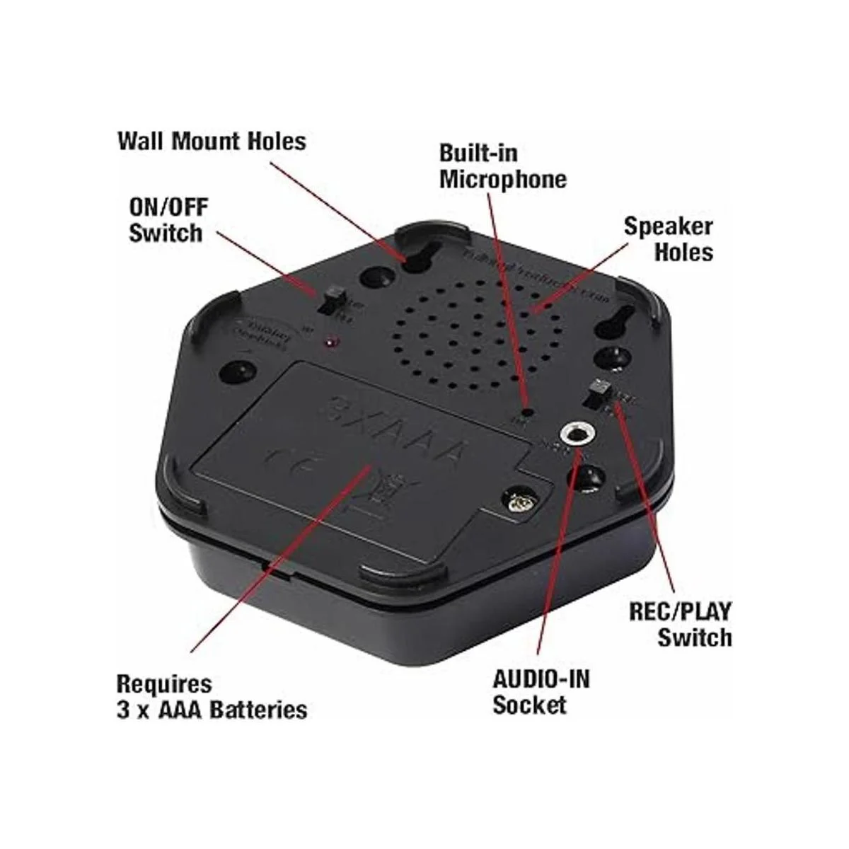 Grabe y reproduzca 80 segundos de voz, música o efectos de sonido con el micrófono y el altavoz integrados.