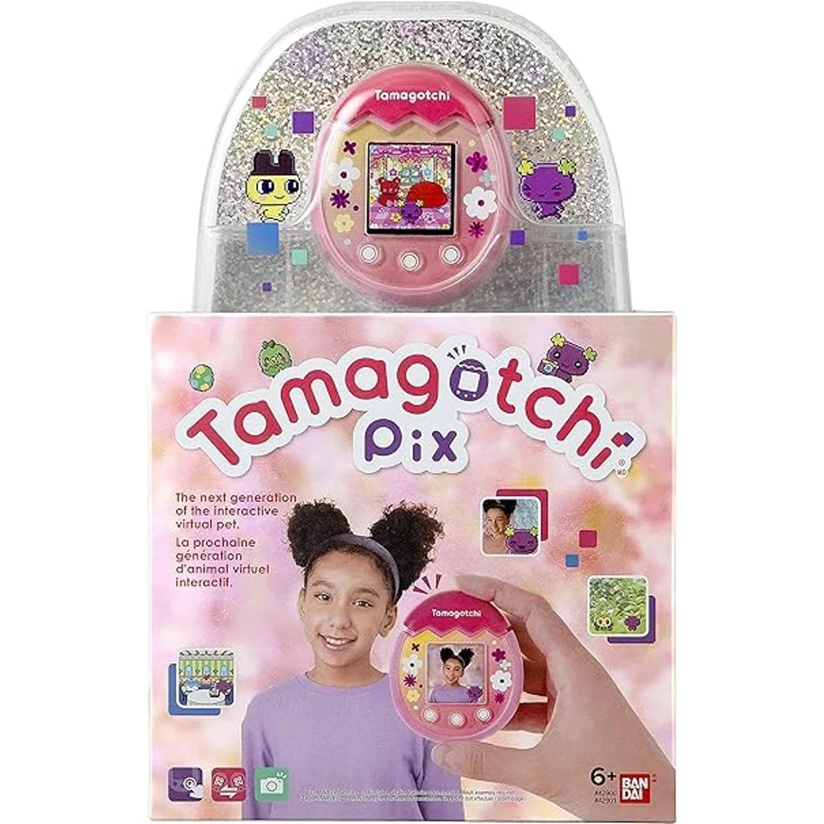 El nuevo TAMAGOTCHI PIX viene con un montón de nuevas características: Tamagotchi Pix tiene una nueva pantalla interactiva a color, cámara integrada, nuevos juegos, opciones sociales y de personalización que hacen que elevar a tu mascota virtual sea aún más divertido