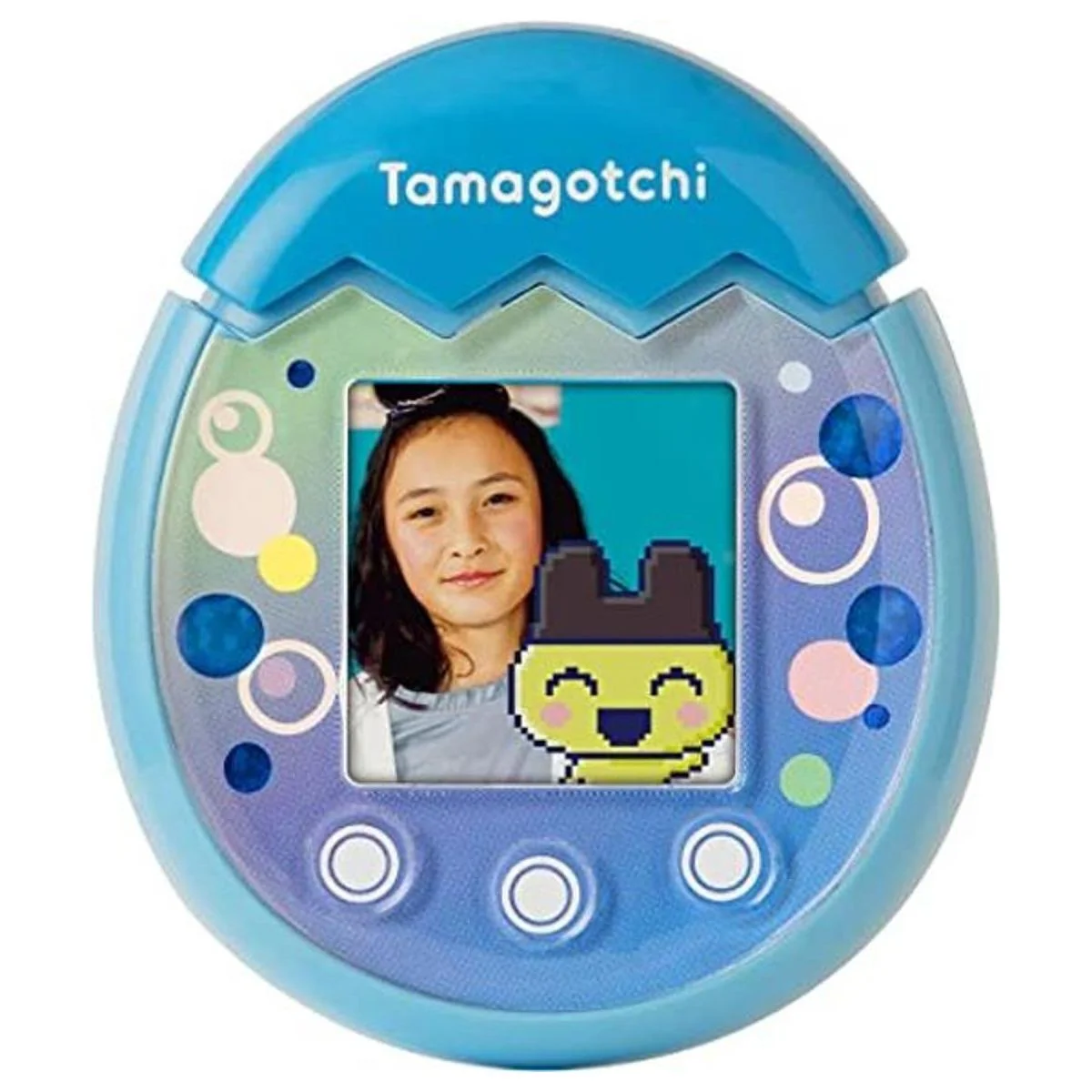 Incluye una cámara para tomarte fotos con tu personaje, cocinar, encontrar nuevos amigos Tamagotchi y tener reuniones de juego con tu mascota. Los botones táctiles te permiten interactuar de una manera en la que puedes personalizar tus artículos, bañar a tu mascota y acariciar a tu personaje Tamagotchi con el toque de un dedo.