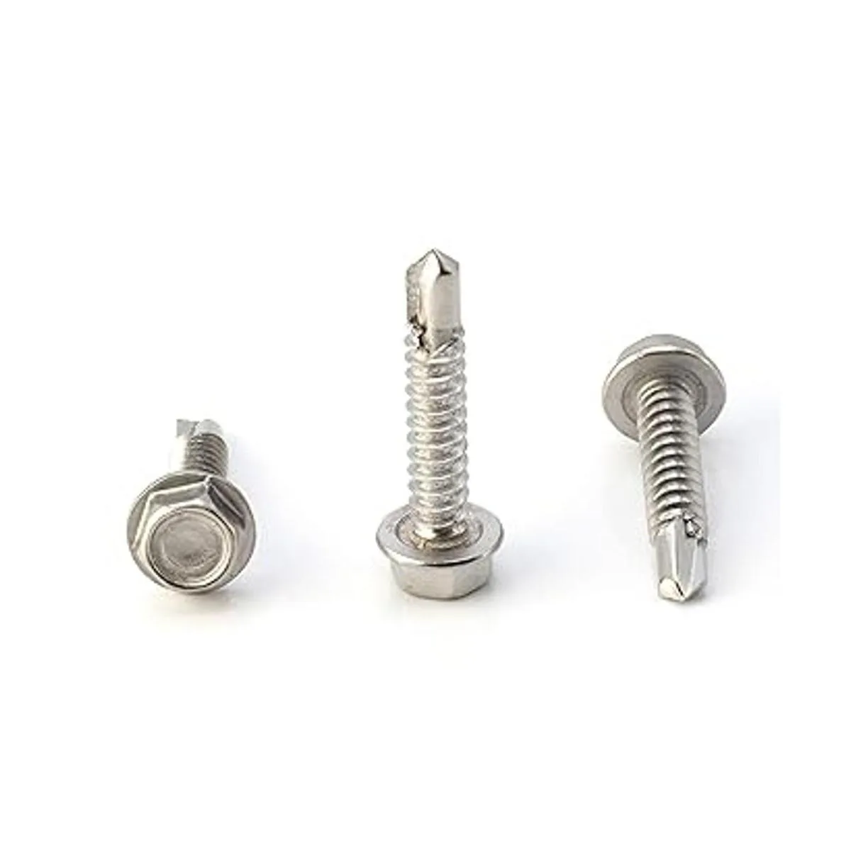 Incluye: 100 tornillos autoperforantes de acero inoxidable 14 x 1 1/4 pulgadas cabeza de arandela hexagonal