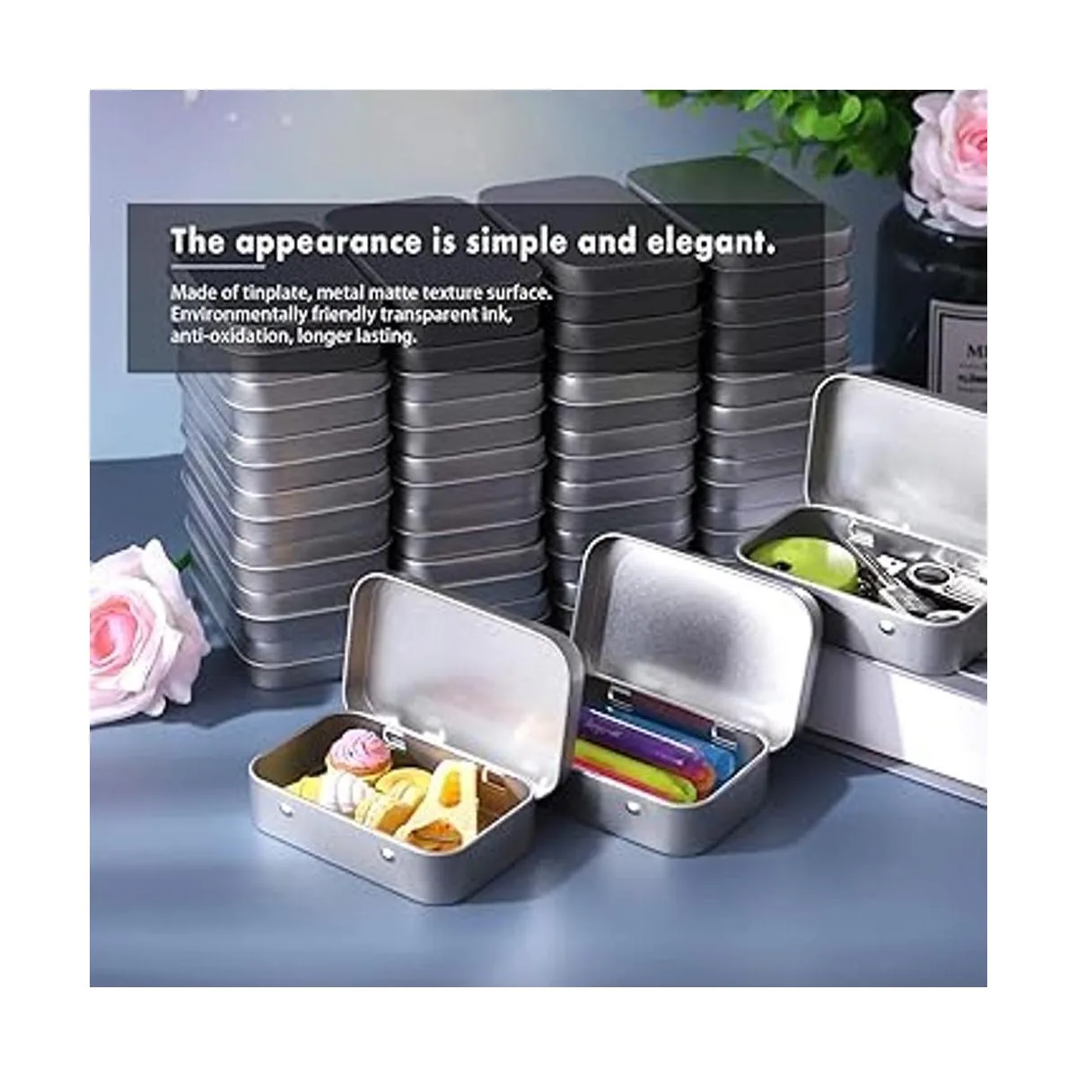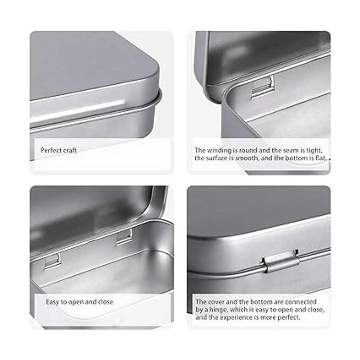 El paquete incluye: viene con 40 cajas de latas vacías rectangulares de metal plateado; ligeras y duraderas, fáciles de transportar