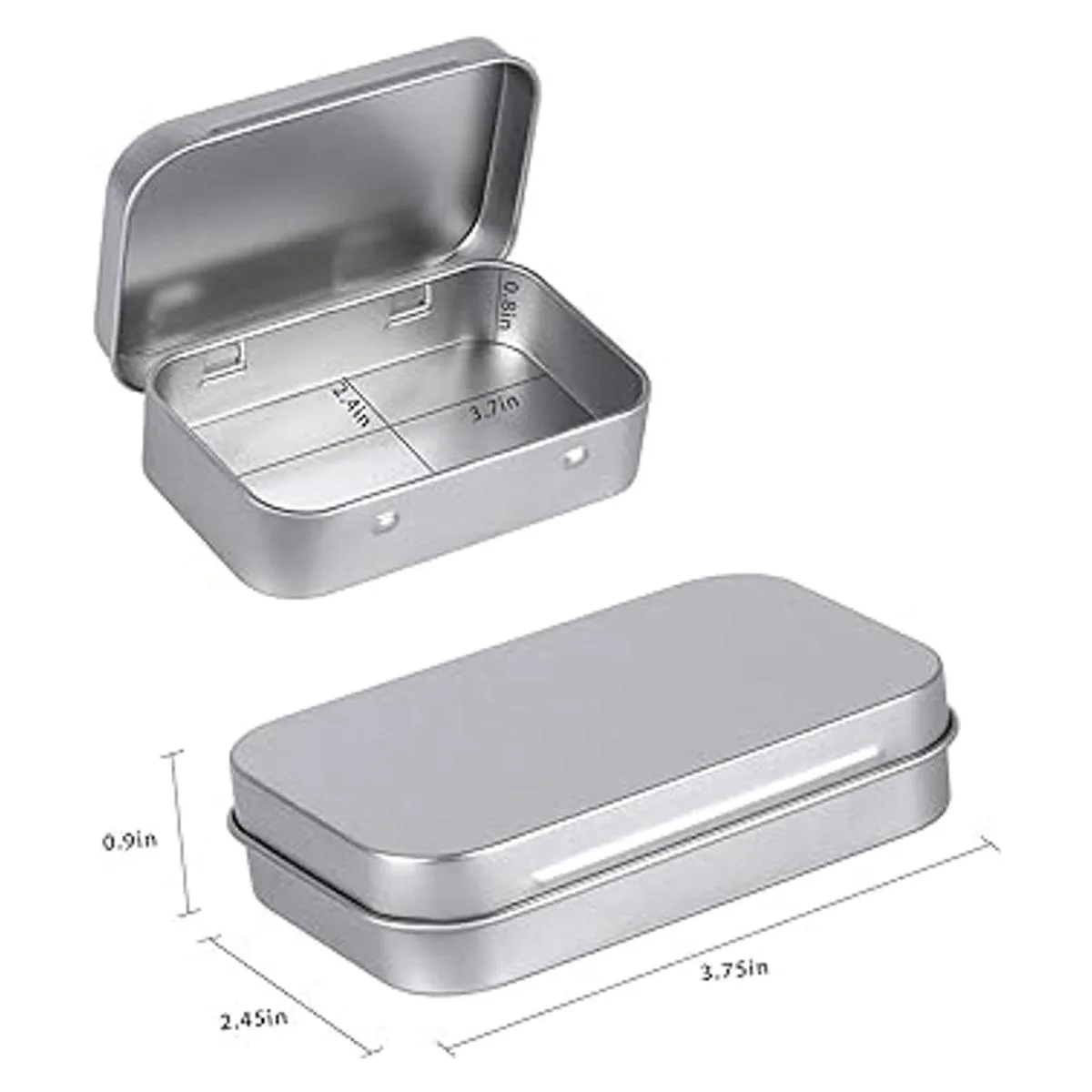 Tamaño: el tamaño de la lata rectangular 3.740 x 2.441 x 0.787 in largo x ancho x alto; el grosor es de 0.009 in; caja de buen tamaño para escondite secreto, puedes utilizar tu propio sentido del estilo para decorarlo