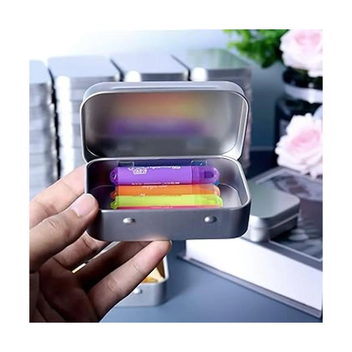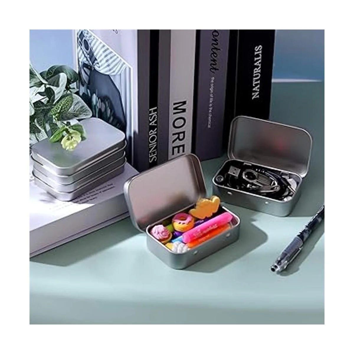Multifunción: estas son latas de metal que se pueden aplicar para almacenar varias cosas pequeñas, como bálsamos labiales, brillo de labios, mini velas, cosméticos, macetas de muestra, hierbas, arte de uñas, etc.