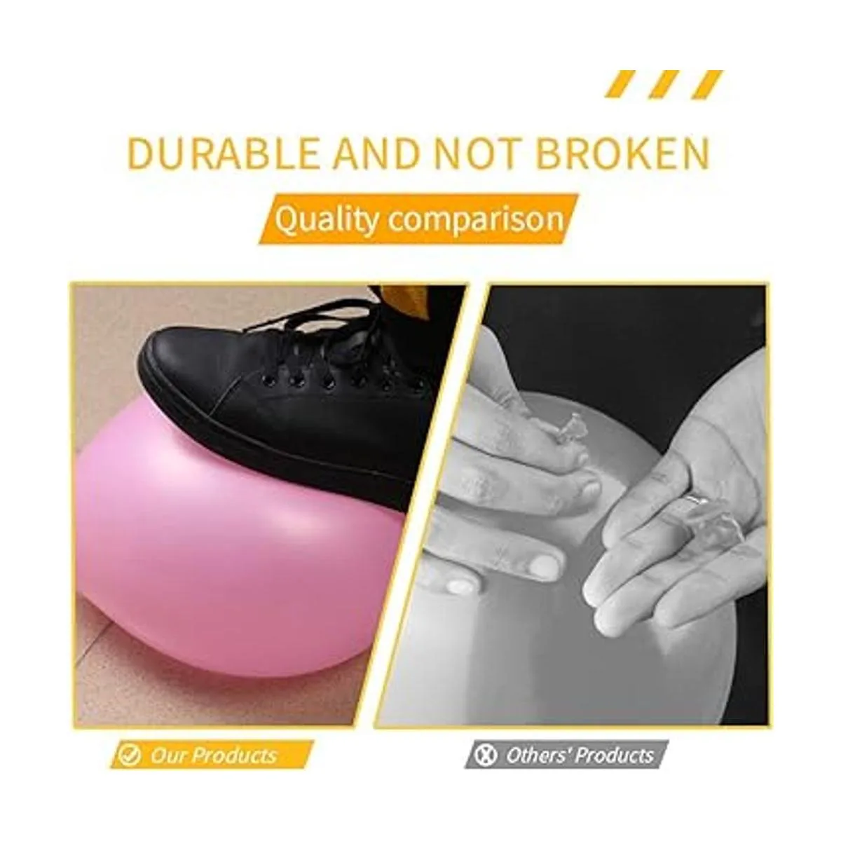 Duradero y fácil de usar: goma súper resistente, duradera es su único sinónimo de calidad. Y es fácil de usar, puedes utilizar una bomba de aire, helio o incluso puedes utilizar agua para inflar los globos.