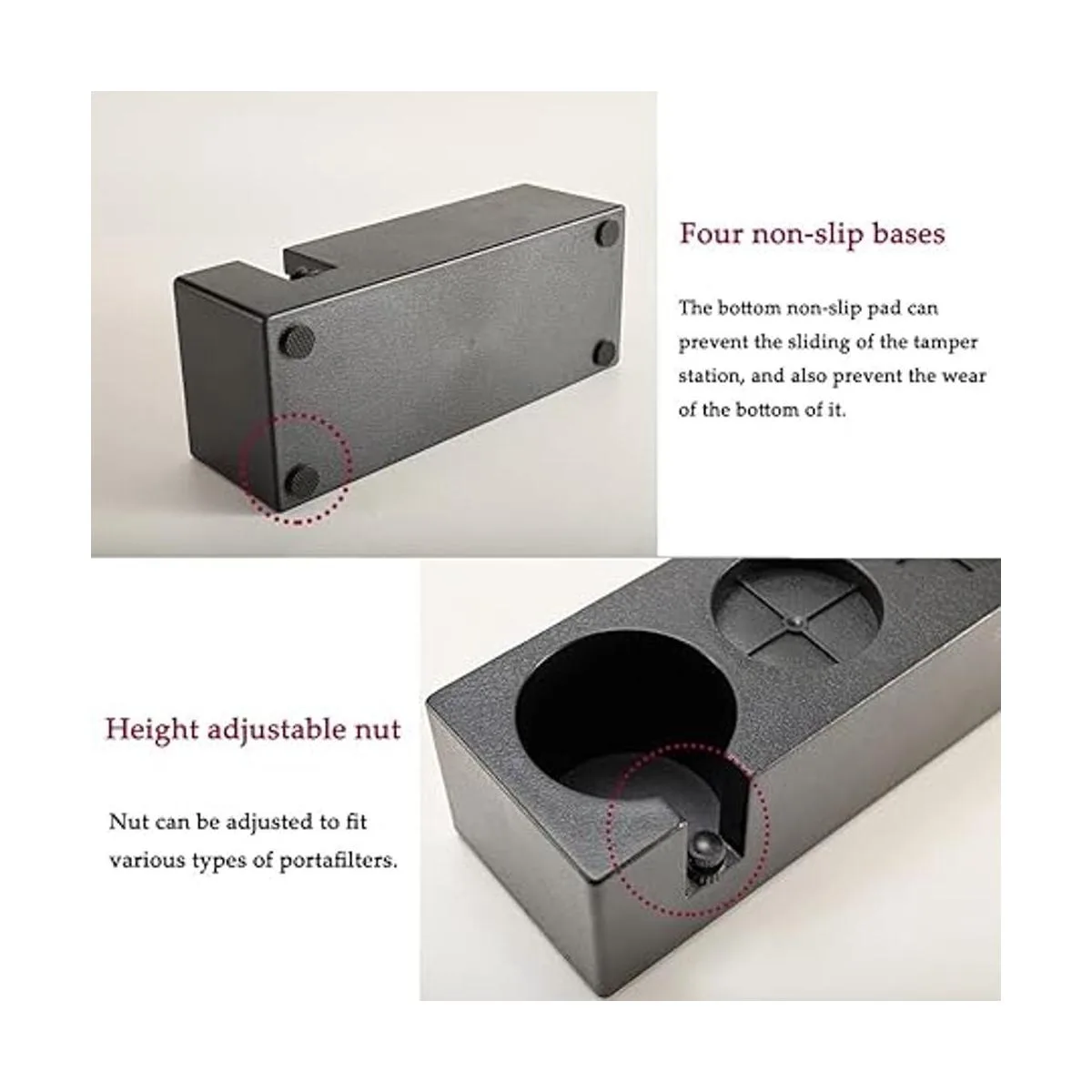 Compatibility: This tamping station is suitable for 58mm portafilters, tampers and coffee distributors.