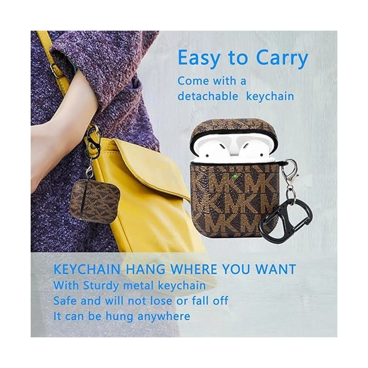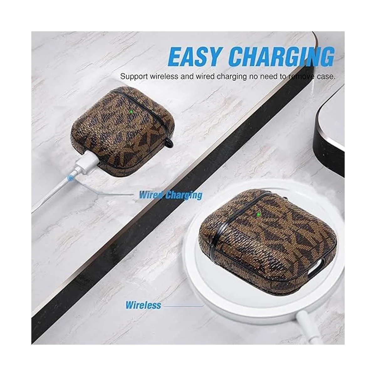 Excelente diseño: el diseño clásico de moda de mano es compatible con AirPods, la funda para AirPods se adapta perfectamente a la carga regular e inalámbrica para la funda AirPods. El LED frontal para funda de carga inalámbrica es visible.