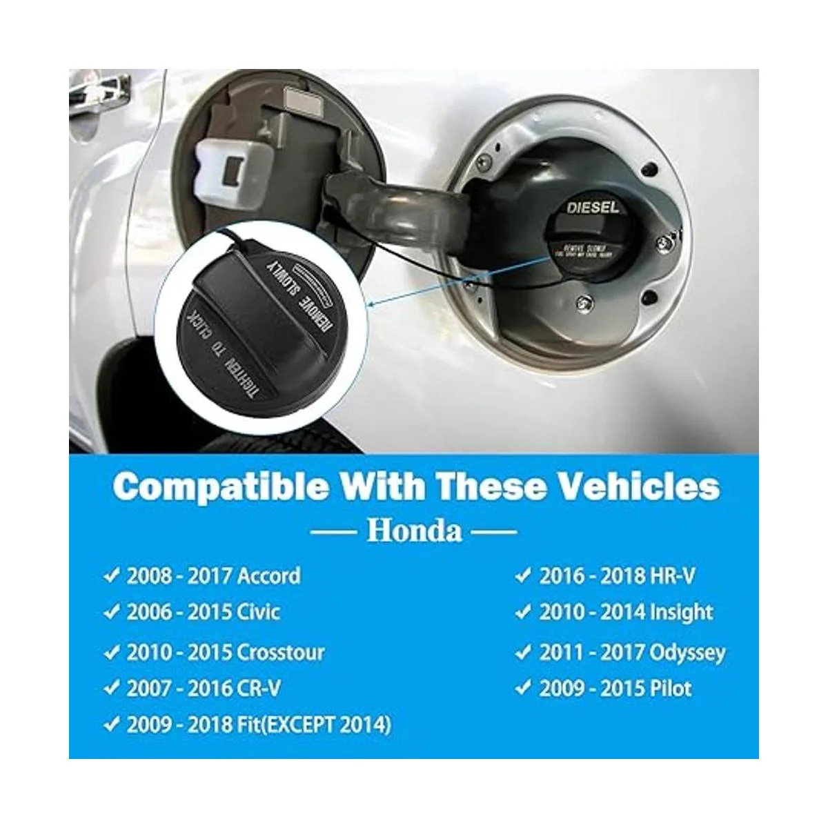 Tapa de combustible 17670T3WA01, tapa de gas para Honda Accord compatible con tapa de gas Honda 20062018, Accord, Civic, Crosstour, CRV, Fit, HRV, Insight, Odyssey, Pilot