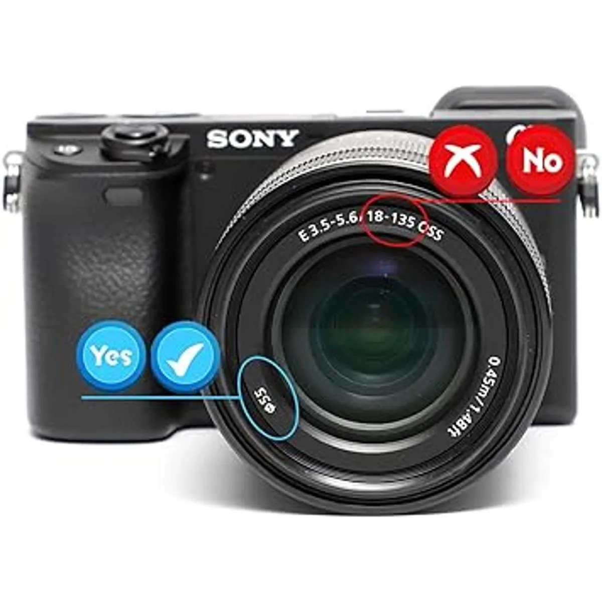 Tapa de lente de 2.165 in para Nikon AFP no AFS DX Nikkor 0.7092.165 in f3.55.6G VR, Sony FE 1.1022.756 in f3.55.6 OSS, HUIPUXIANG compatible con Canon EFM 0.4330.866 in f45.6 es STM lente de rosca de filtro de 21,872.244 in 2 paquete de 2