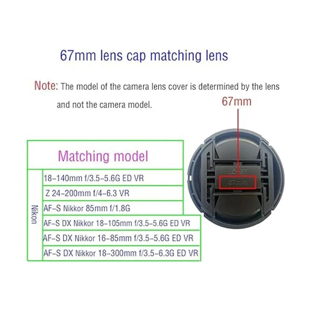 Tapa de lente de 2.638 in para Nikon 0.7095.512 in f3.55.6G ED VR, AFS DX Nikkor 0.7094.134 in f3.55.6G ED VR, AFS DX Nikkor 0.6303.346 in f3.55.6G ED VR 2 unidades